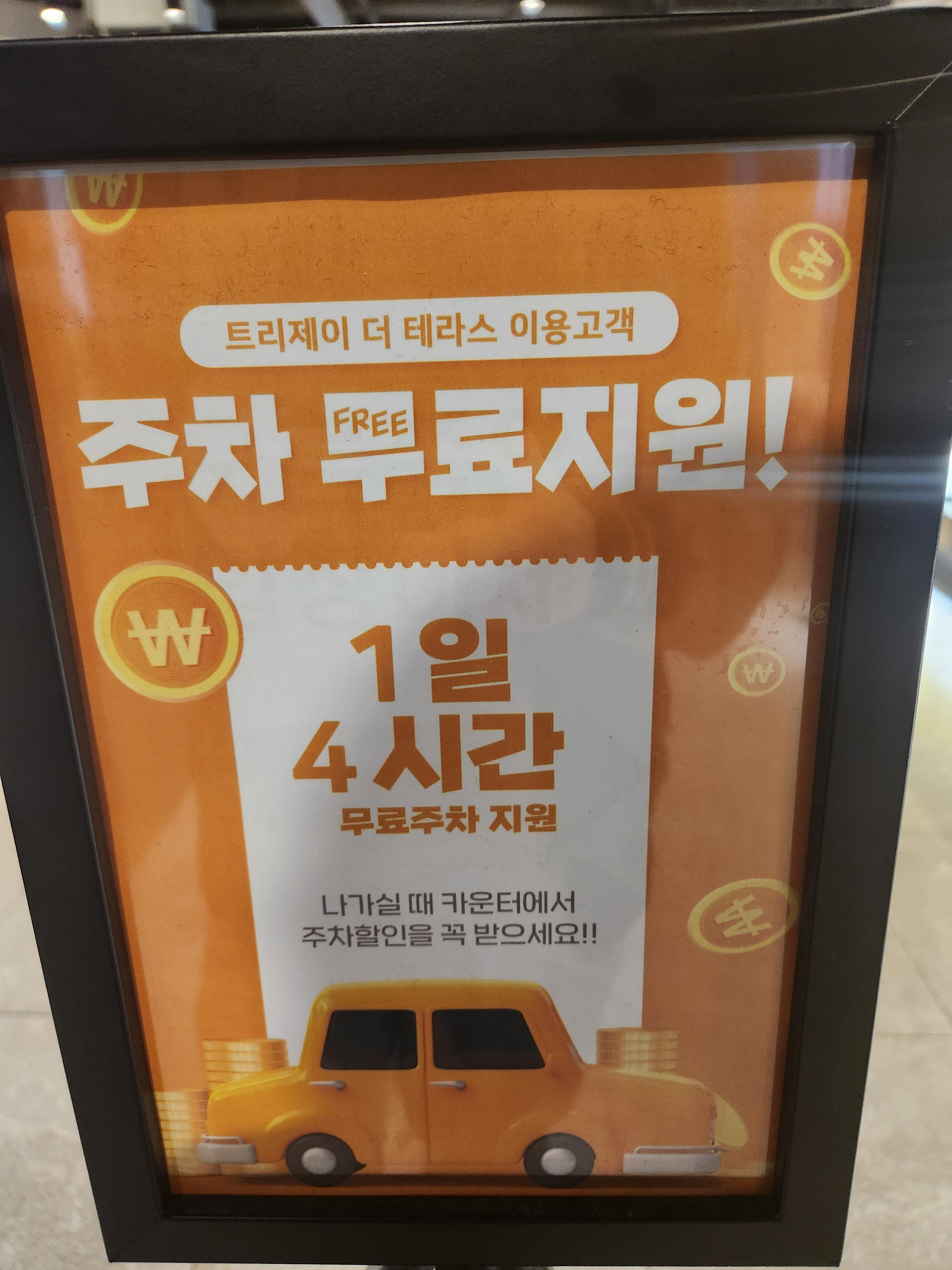 주차는 1일 4시간 무료로 가능하다! 주의할 점은 같은 건물의 다른 가게 갔다가 와도 중복 적용이 안된다고 한다! (딱 4시간까지 무료 적용되고 요금 부과됨) 계산 후에 주차 넘버를 얘기해 주면 적용해 주신다!