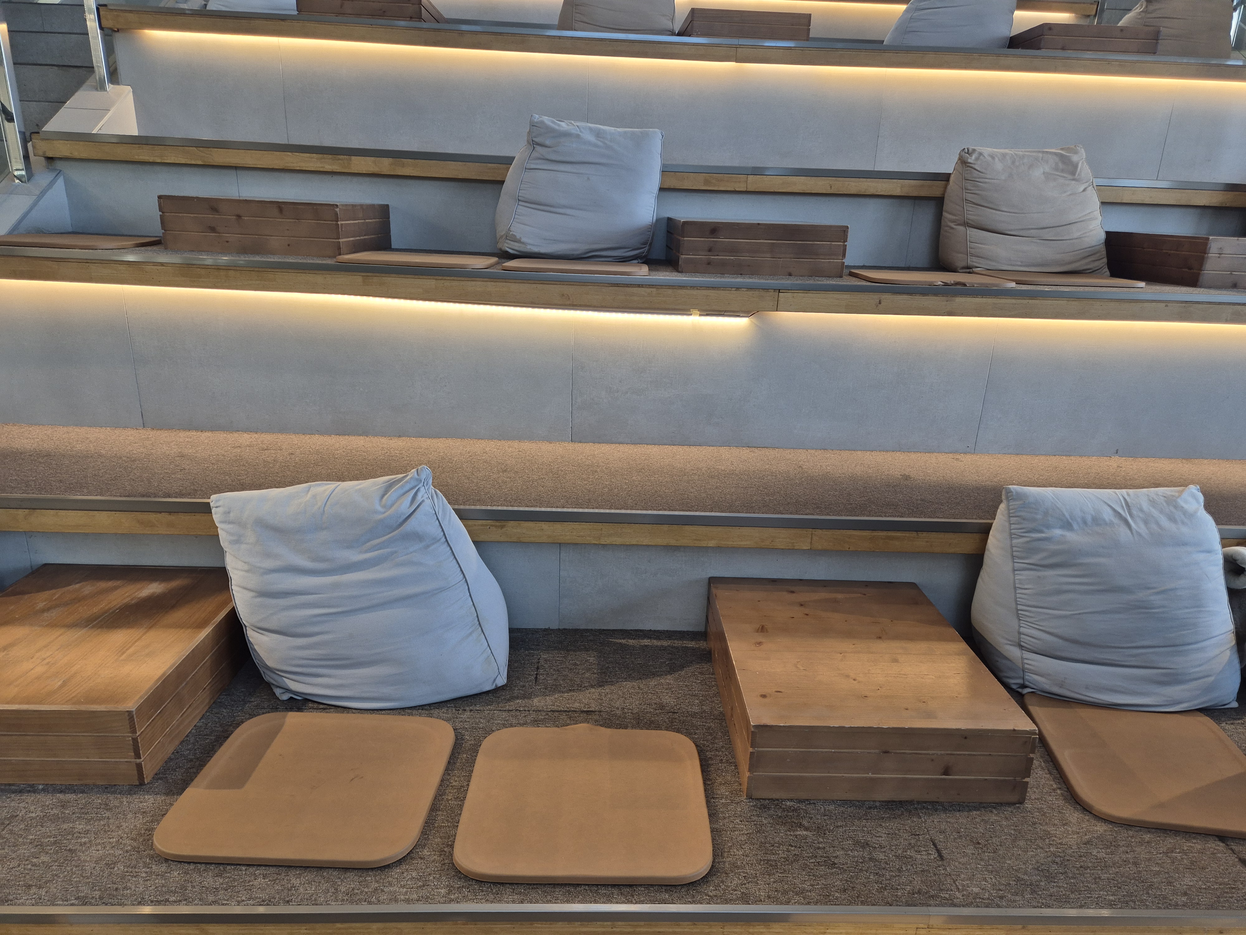 좌식 좌석은 분수대 앞에 있는데 쿠션에 등을 기대고 옆에 음료를 놓고 마실 수 있다! 필자는 여기 앉았는데 생각보다는 편하지 않았다~