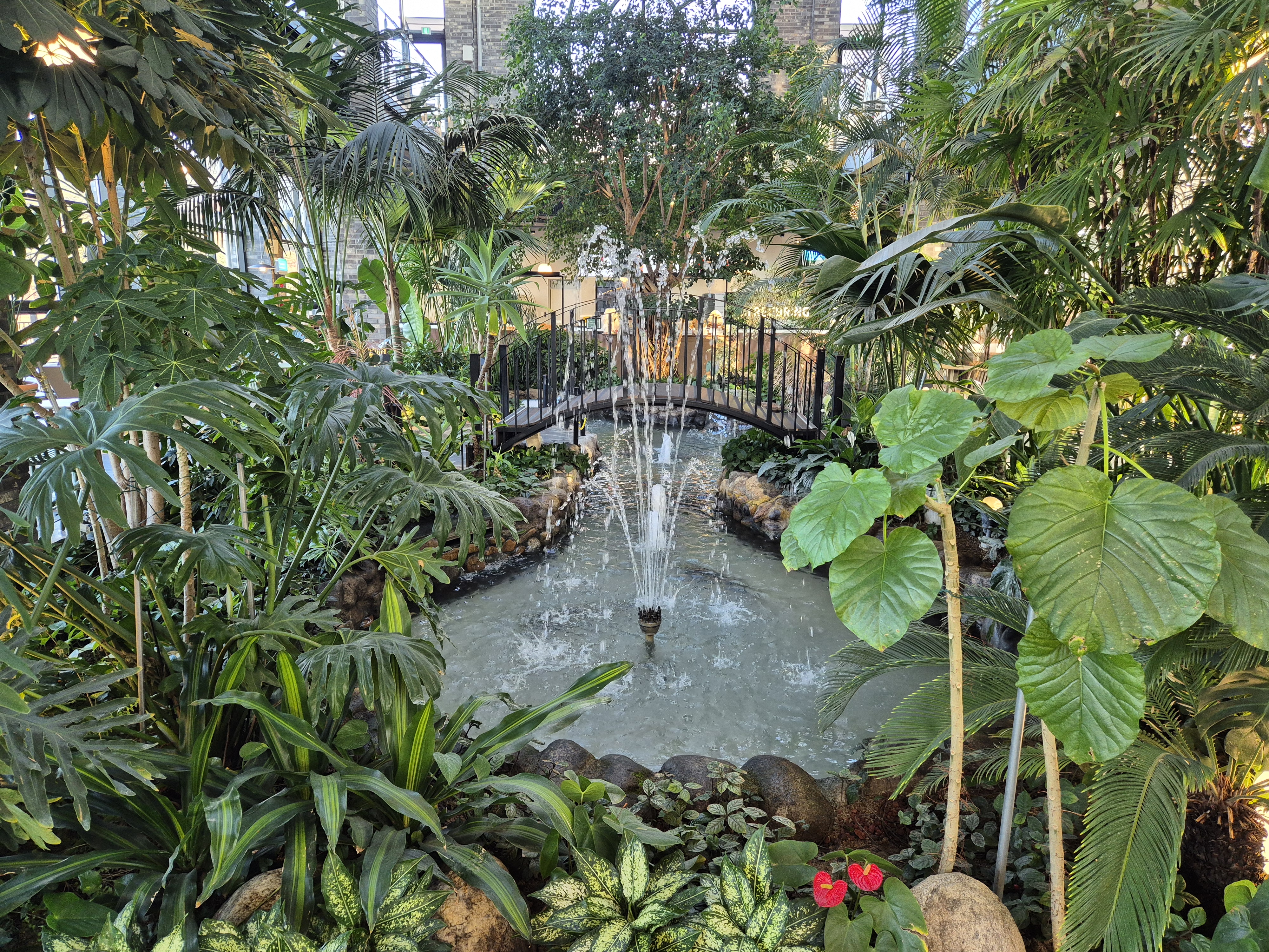 카페 중앙에는 아름다운 분수대가 있다! 작은 나무들에 둘러싸여 있고 중간에 건널 수 있는 다리도 있어서 사진 찍기 좋다~