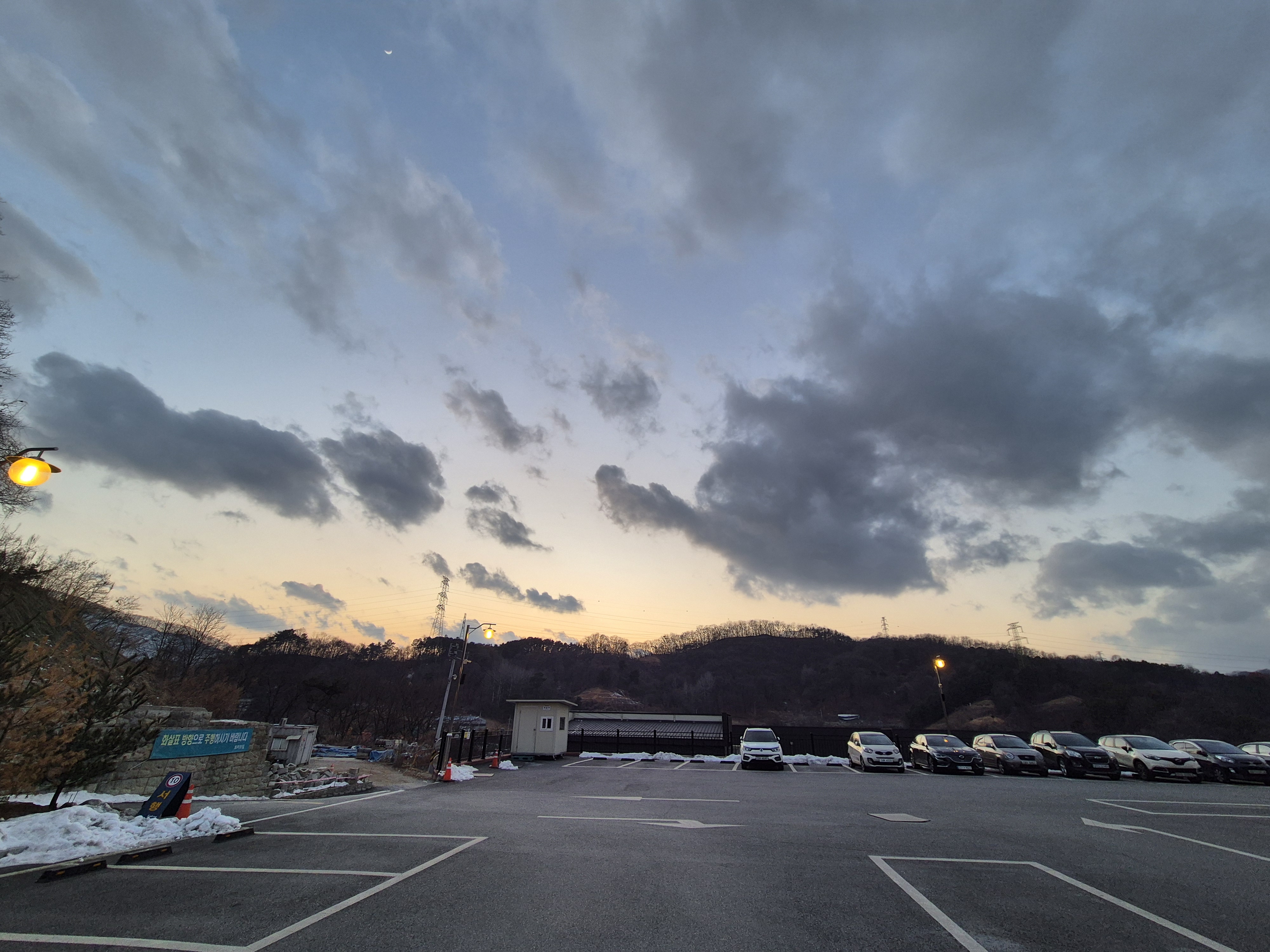 카페를 나와서 집으로 가기 전 하늘은 무척 아름다웠다! 주변에 산이 있어서 더 멋진 것 같다~