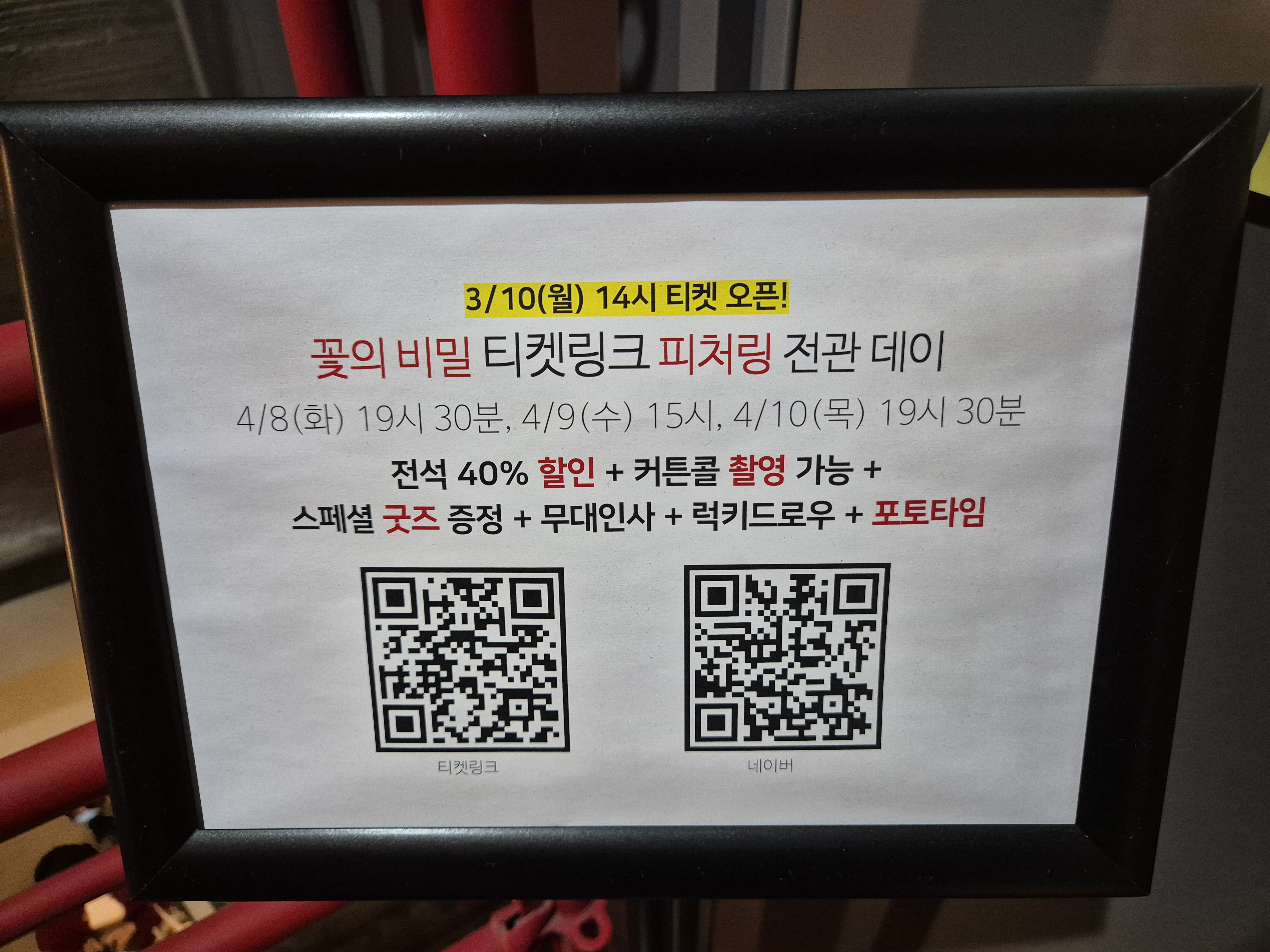 전관 데이 이벤트가 있는데 스케줄이 맞지 않는 날.. 아주 부럽다! 빵빵한 할인 + 커튼콜 + 굿즈 + 무대 인사 + 러키 드로우 + 포토까지... 벌써부터 배 아프다ㅜㅜ