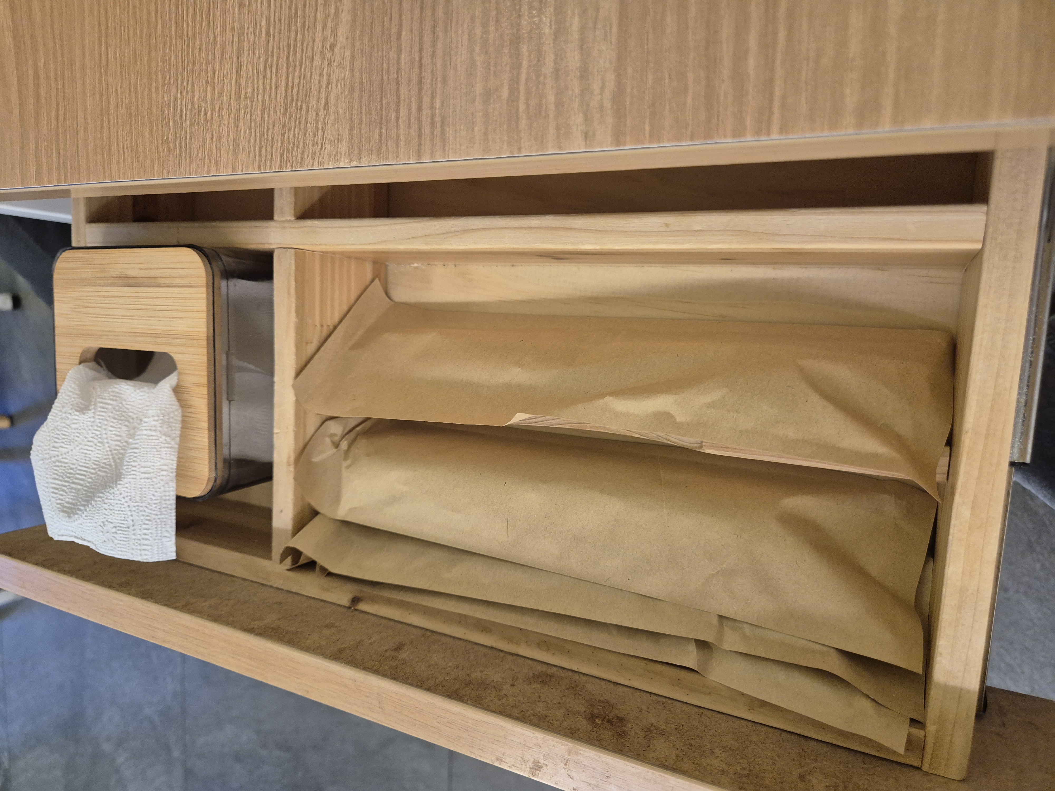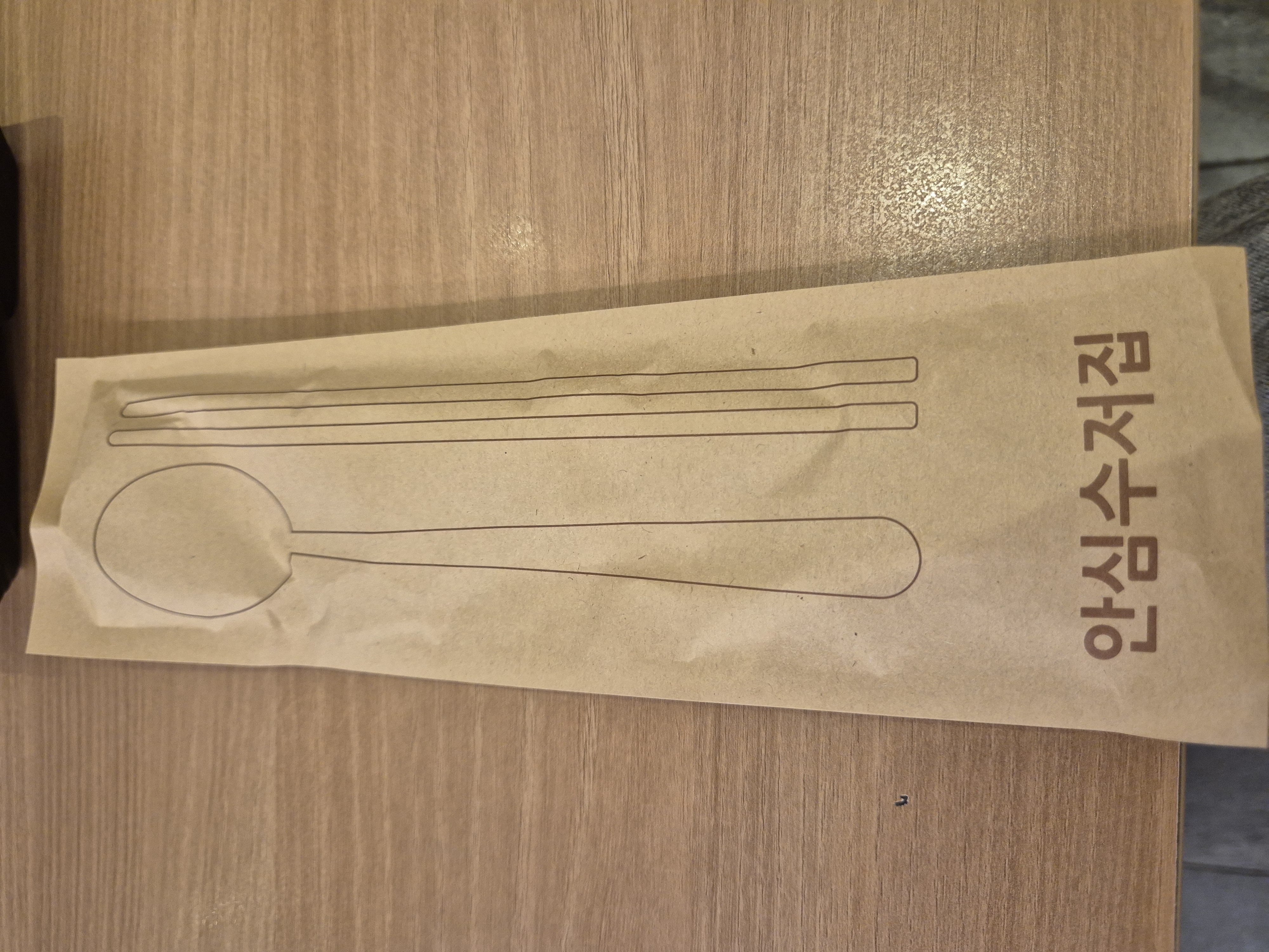 테이블 옆쪽의 서랍을 열어서 수저를 가져갈 수 있는데 특이하게 종이로 포장되어 있다!