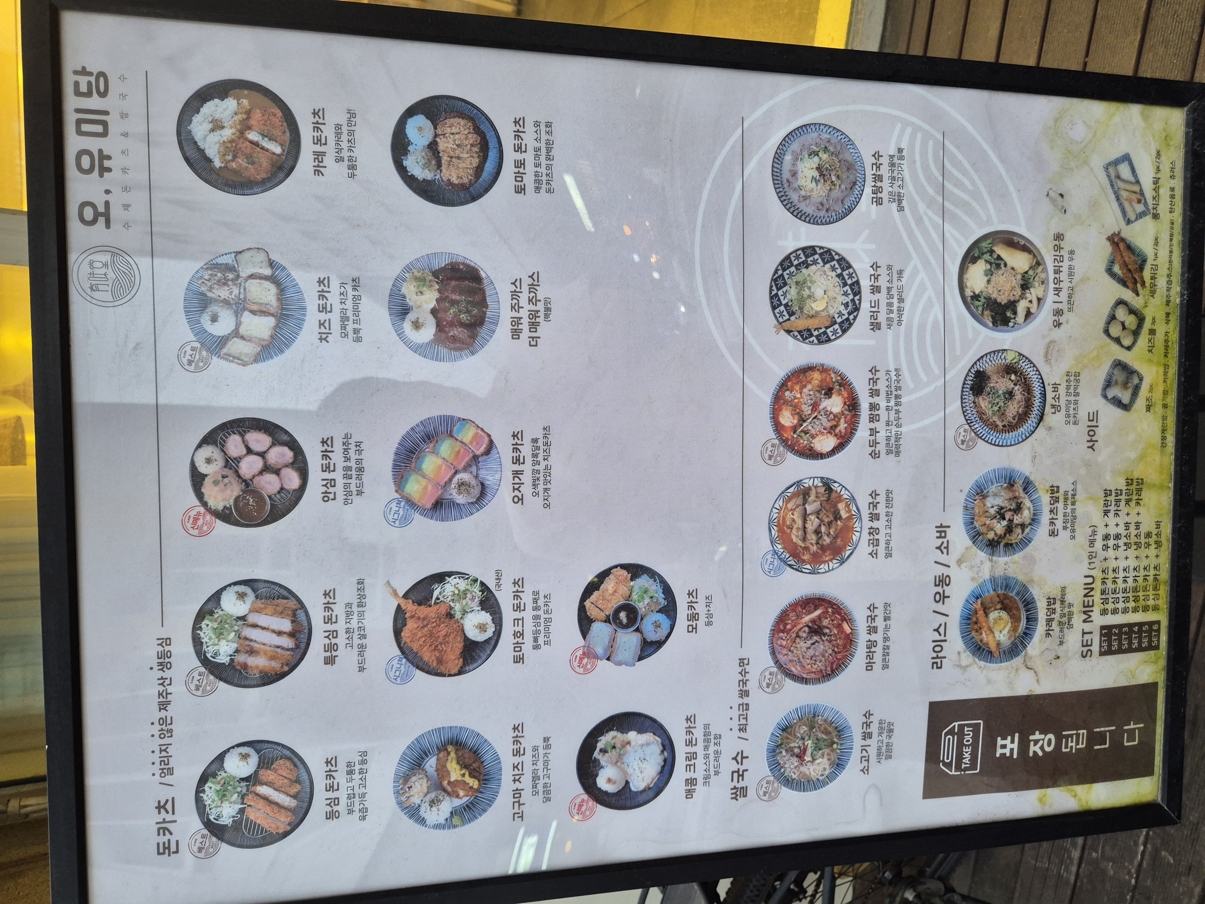 식당 외부에 메뉴판이 있어서 봤는데 특이하고 맛있어 보이는 메뉴도 많았다!