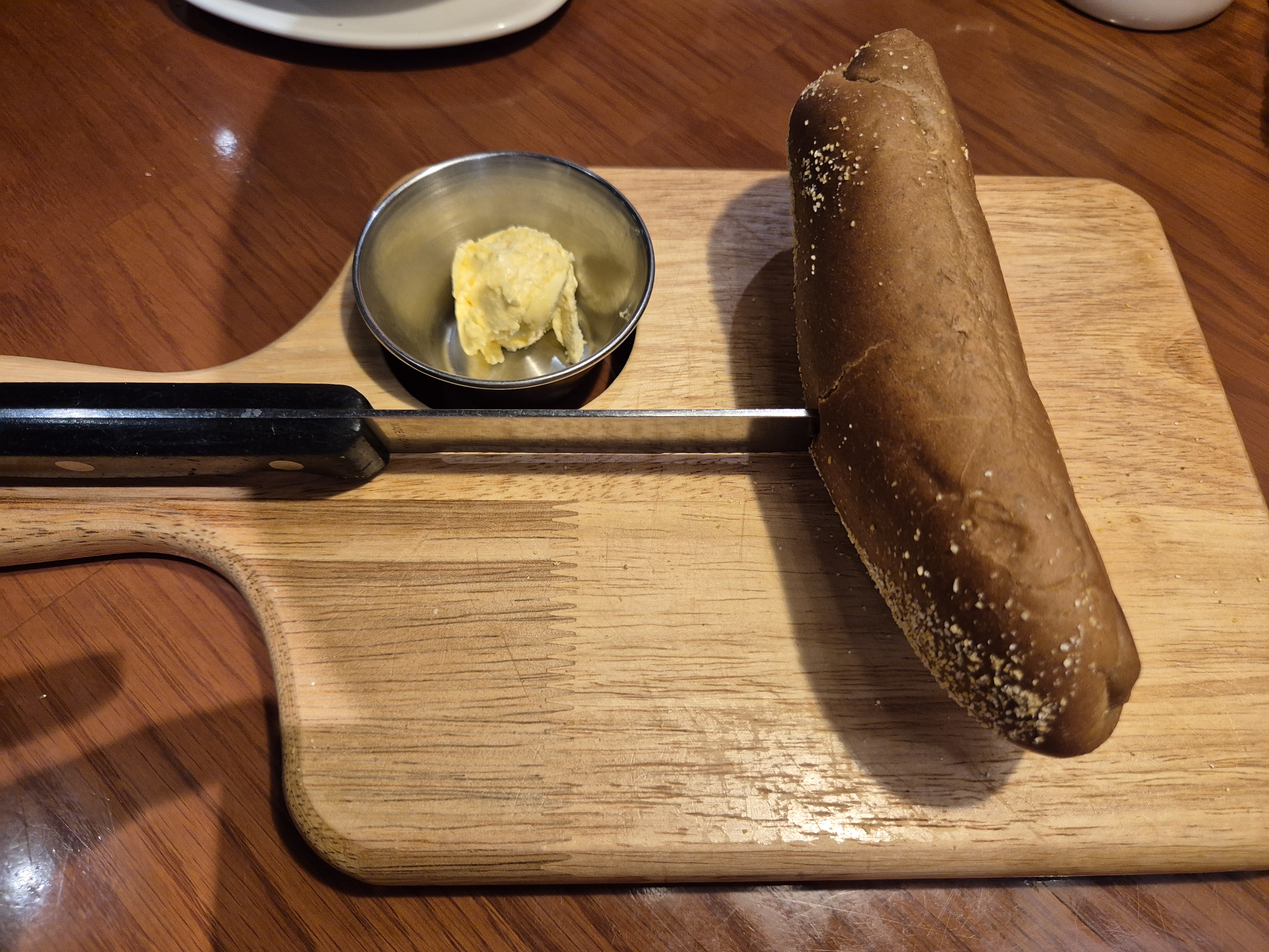 아웃백의 애피타이저인 브레드가 나왔다! 잘라서 버터에 발라먹으면 부드럽고 고소하여 맛이 좋았다~ 배가 덜 차면 더 먹어야지 생각했는데 결국 더 못 먹음 ㅜㅜ