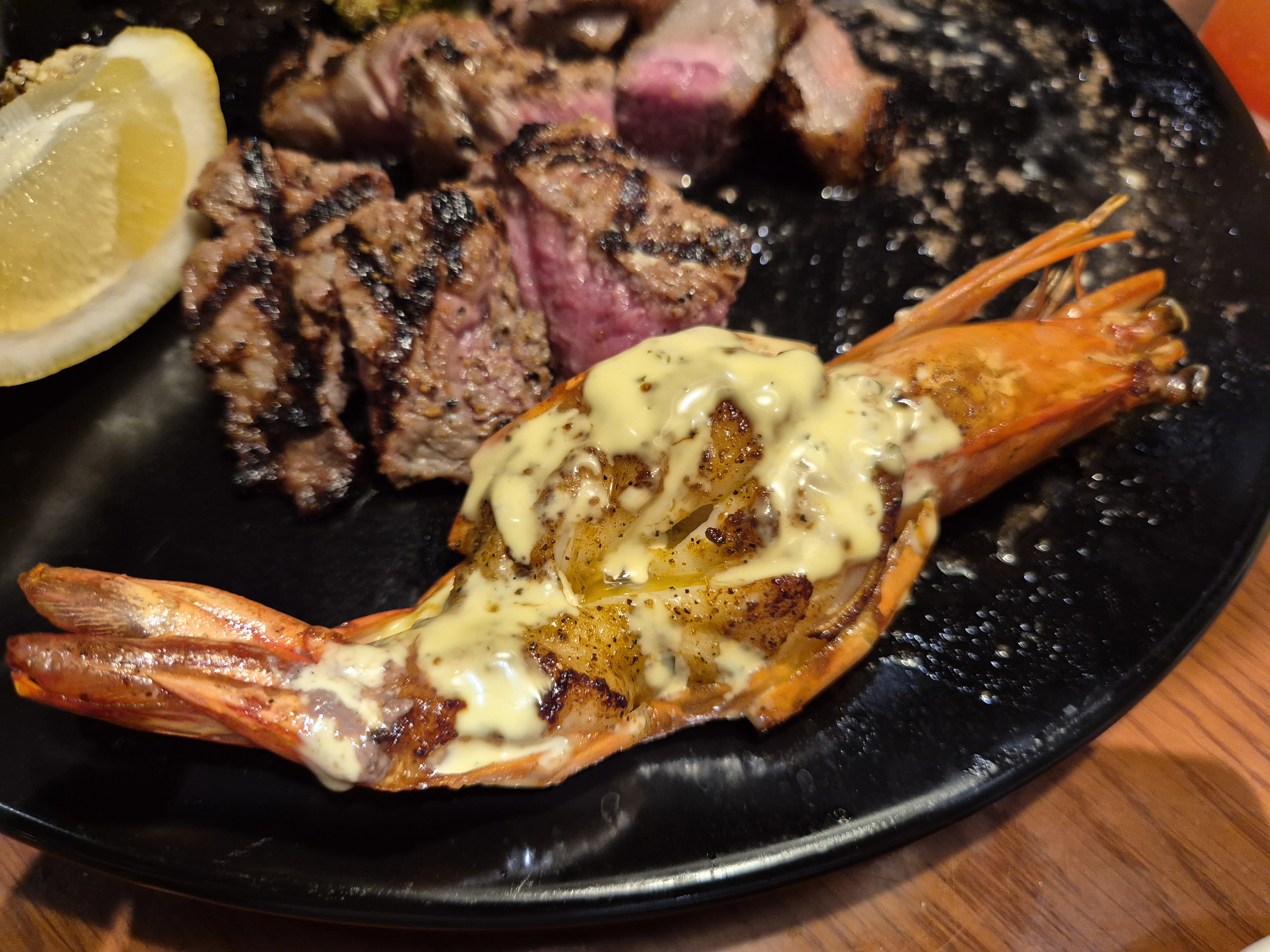 킹 프라운은 큰 새우인데 치즈를 멜팅 시켜 만들었고 나이프로 발라먹었는데 굉장히 맛있었다~ 다만 속살이 많은 편은 아니라 아쉬웠다..