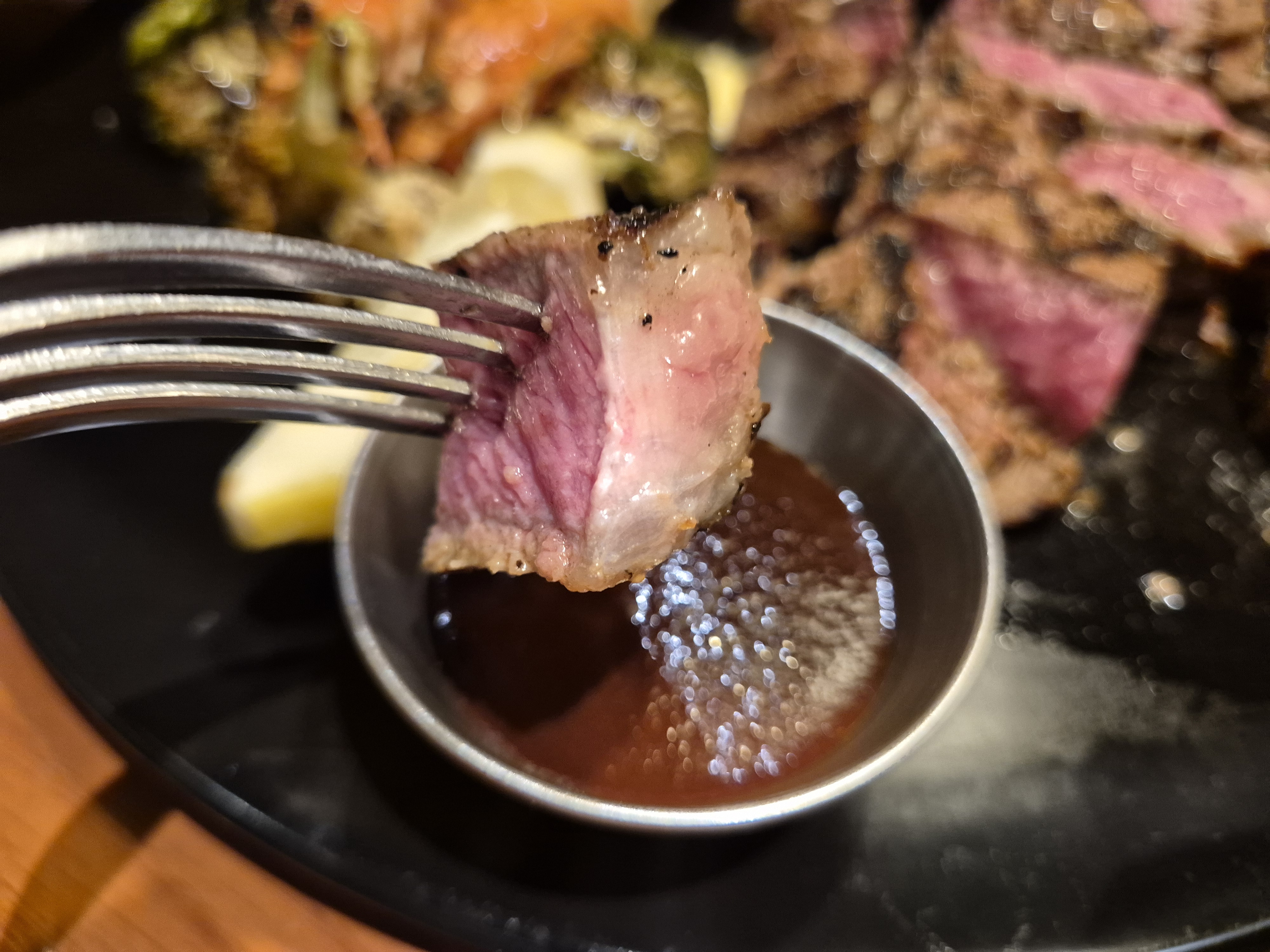 미디엄 레어답게 살짝 덜 익었으며 부드러운 식감을 자랑하였다~ 스테이크 소스에 찍어먹으면 아주 맛있다!