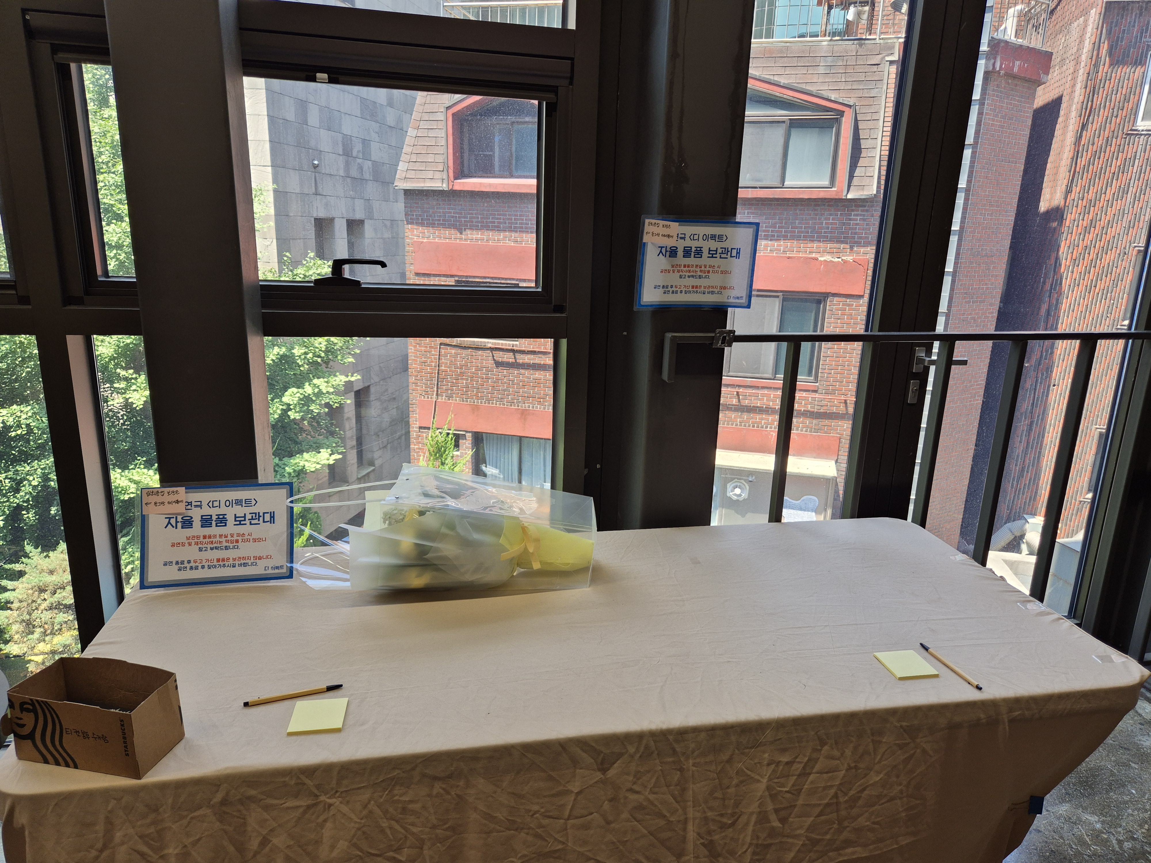 물품 보관대가 있긴 한데 자율적으로 테이블에 올려놓는 형식이라 이용은 안 한다^^ 타인은 절대 안 믿음ㅋㅋ