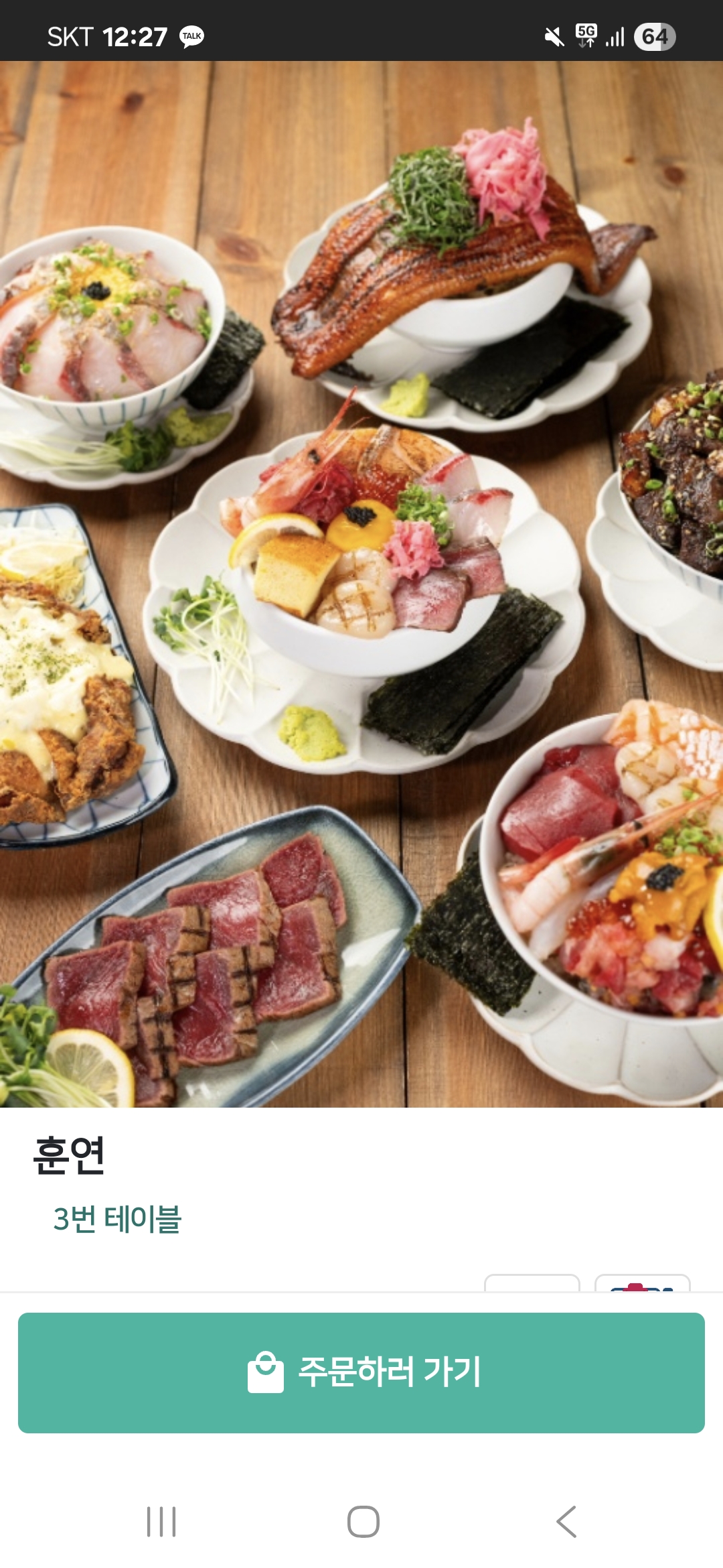 QR코드로 들어가면 해당 테이블 번호가 팝업이 되고 아래에서 메뉴들을 담아서 주문하면 된다~ 단, 계산은 식사 후에 카운터에서 진행한다!