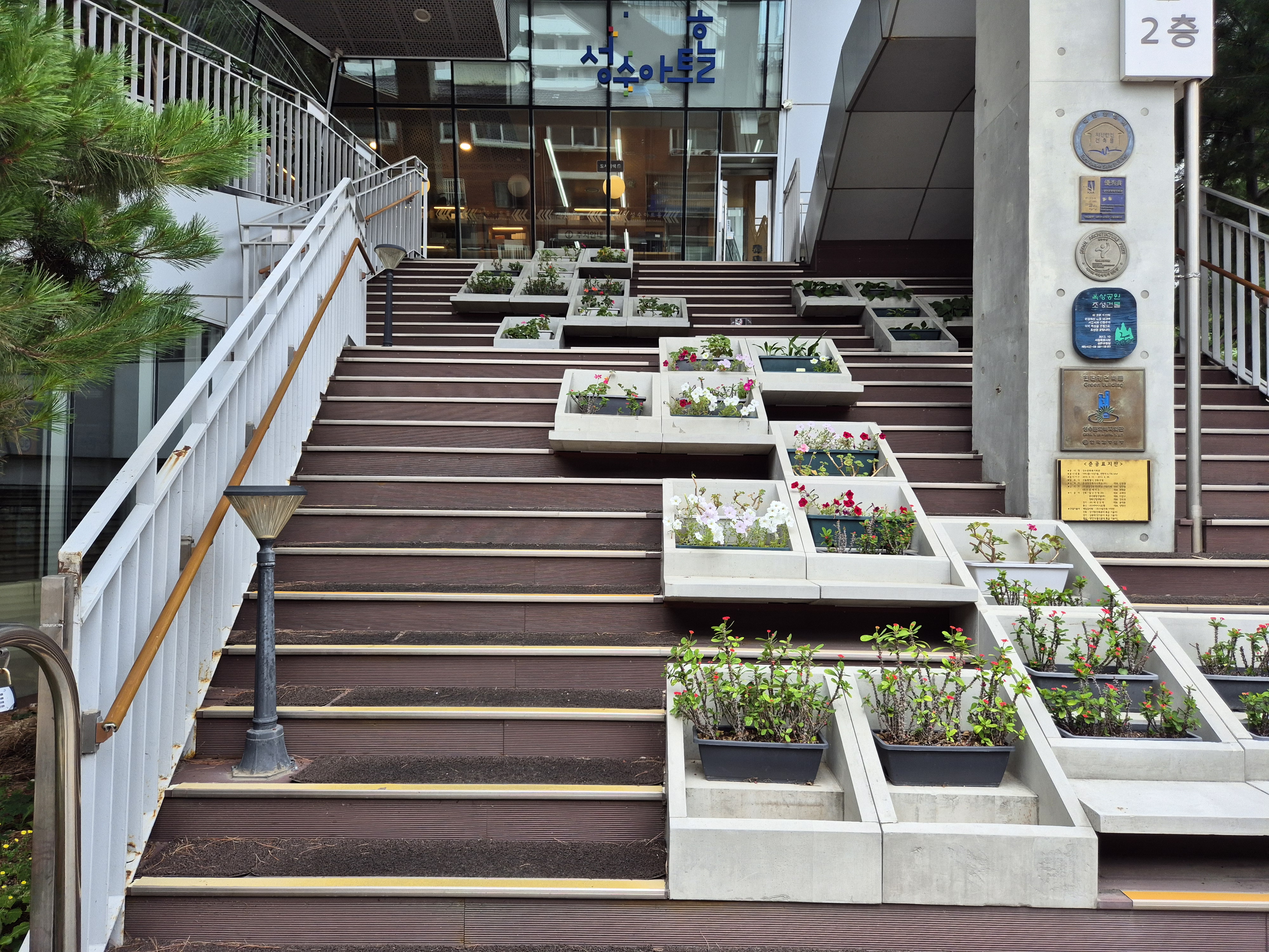 건물 입구로 가는 계단은 높고 많았다! 계단 중간에 식물을 이쁘게 배치해 놨음~