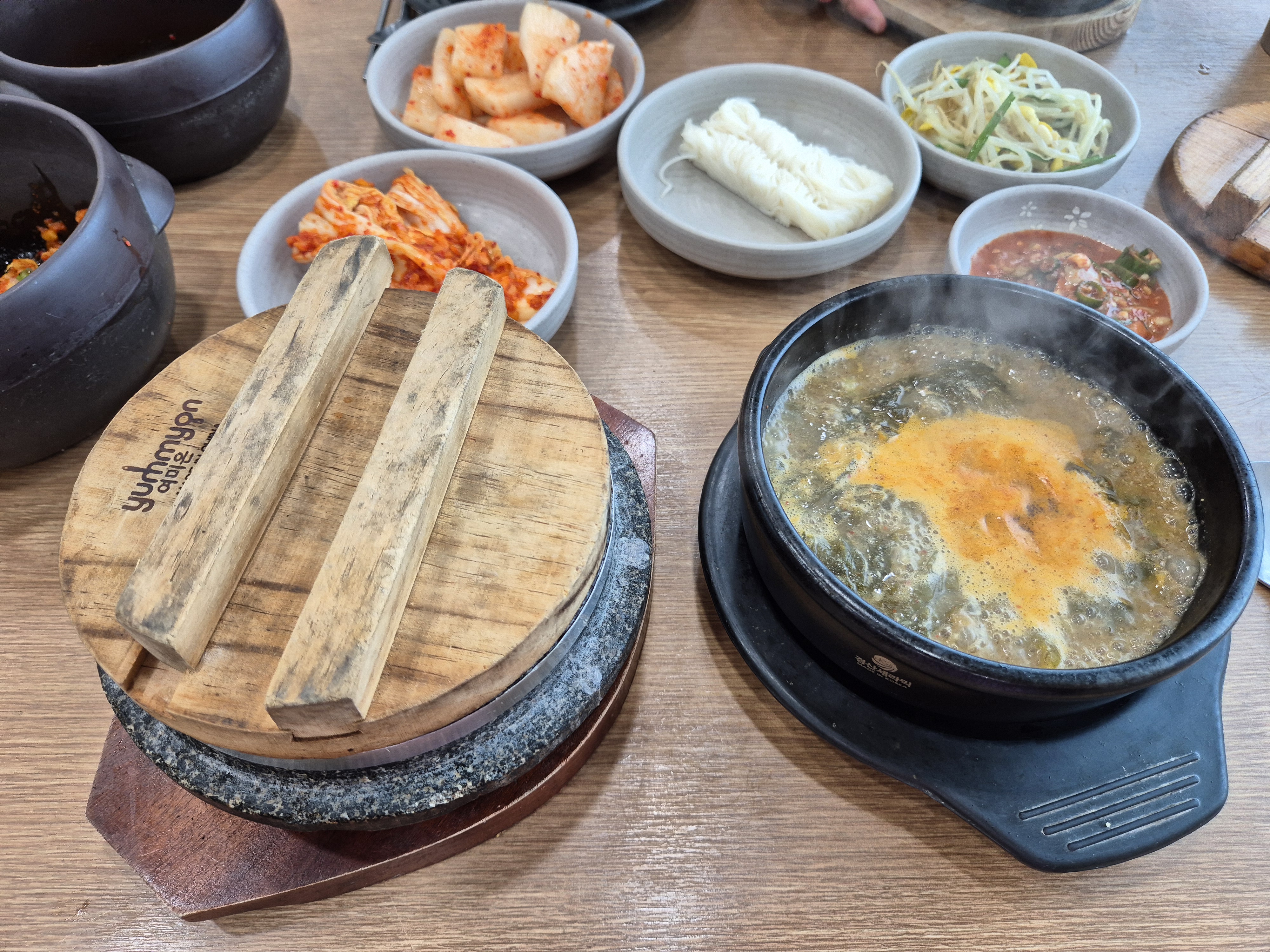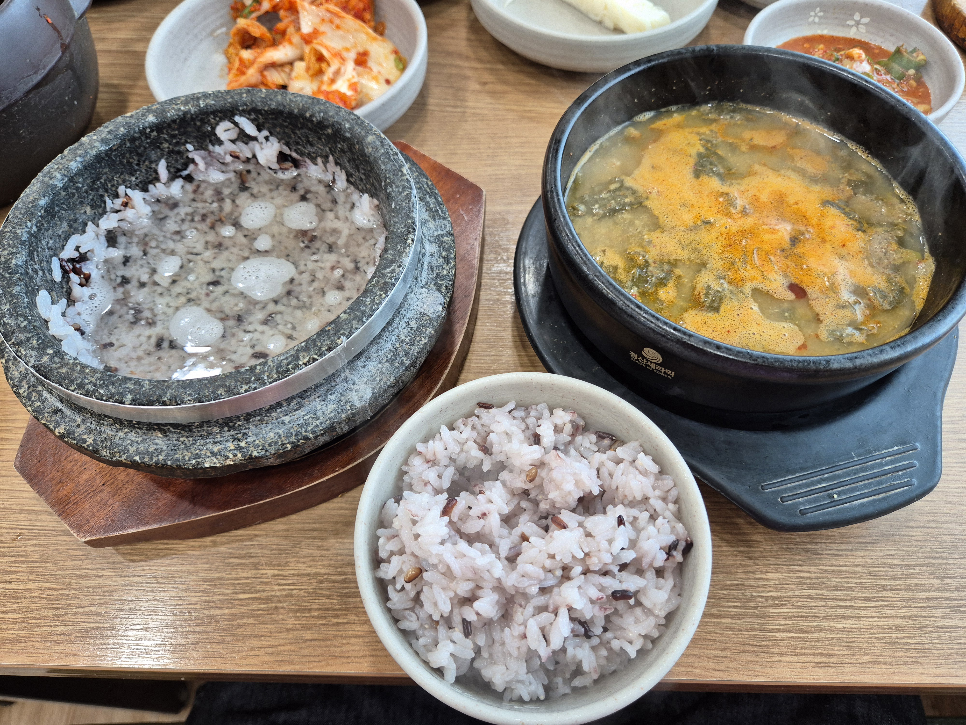 추어탕과 돌솥밥이 나왔다! 돌솥밥의 밥을 그릇에 덜고 뜨거운 물을 덮었다~