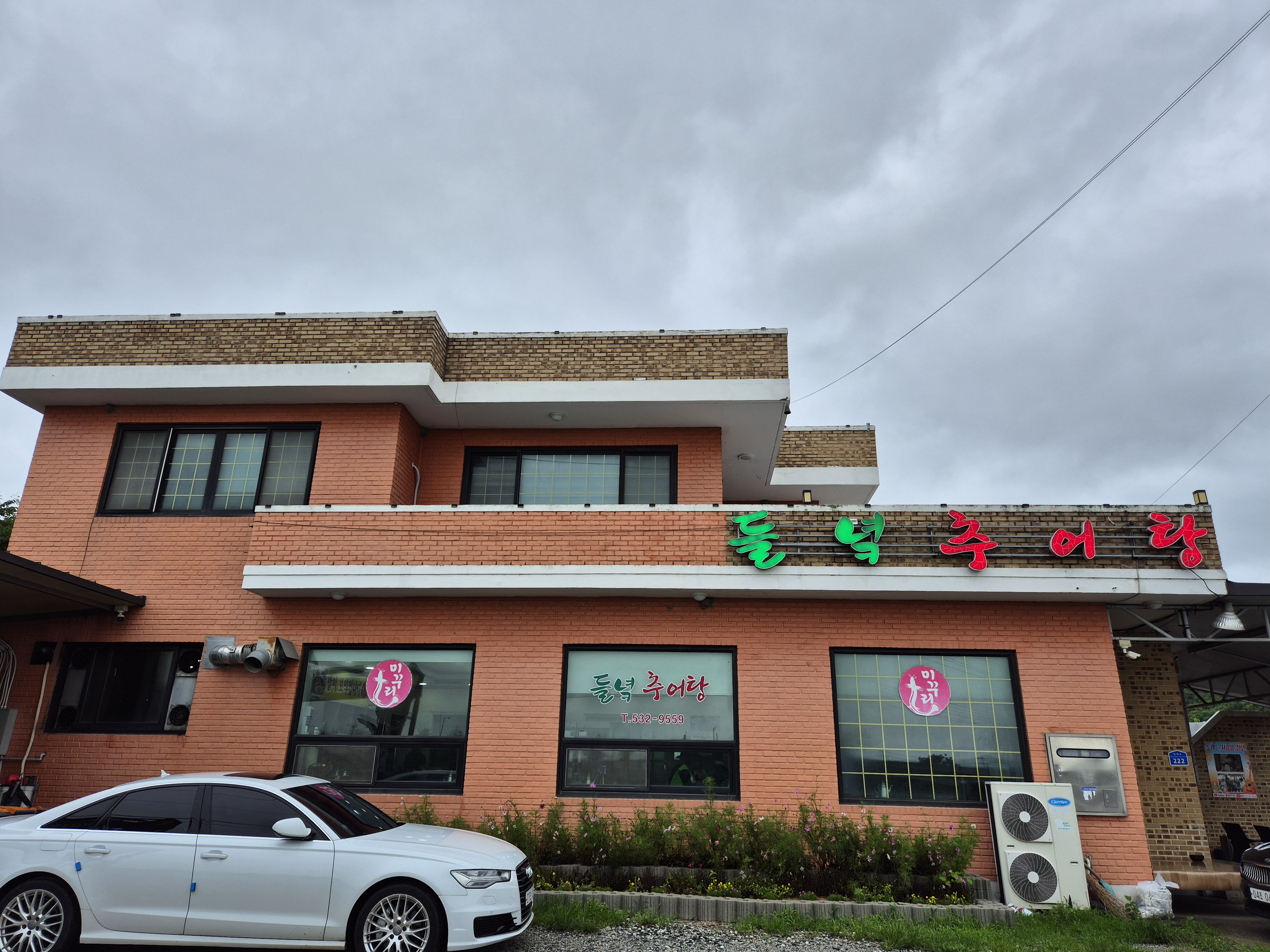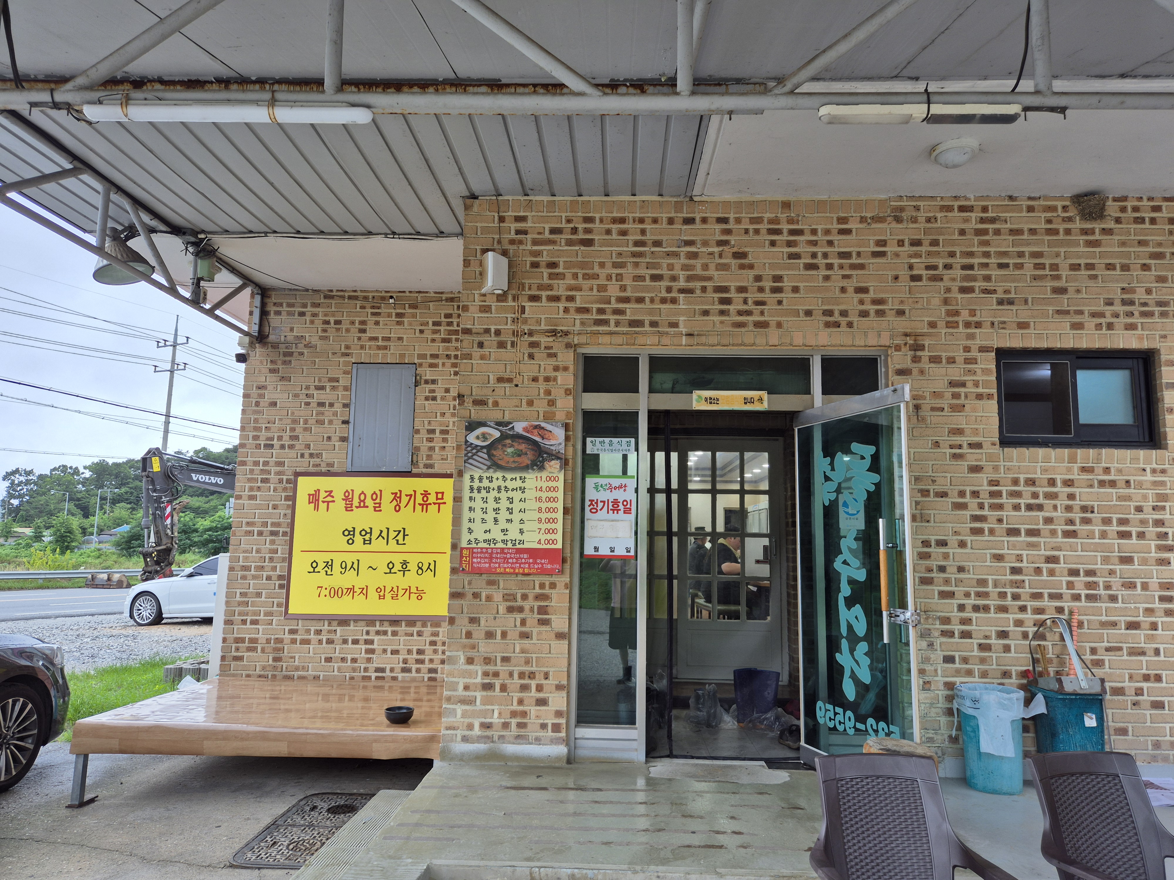 주차장은 식당 앞에 있는데 구획선이 그려져있지는 않다! 보이는 공간에 옆면 주차를 하면 된다~