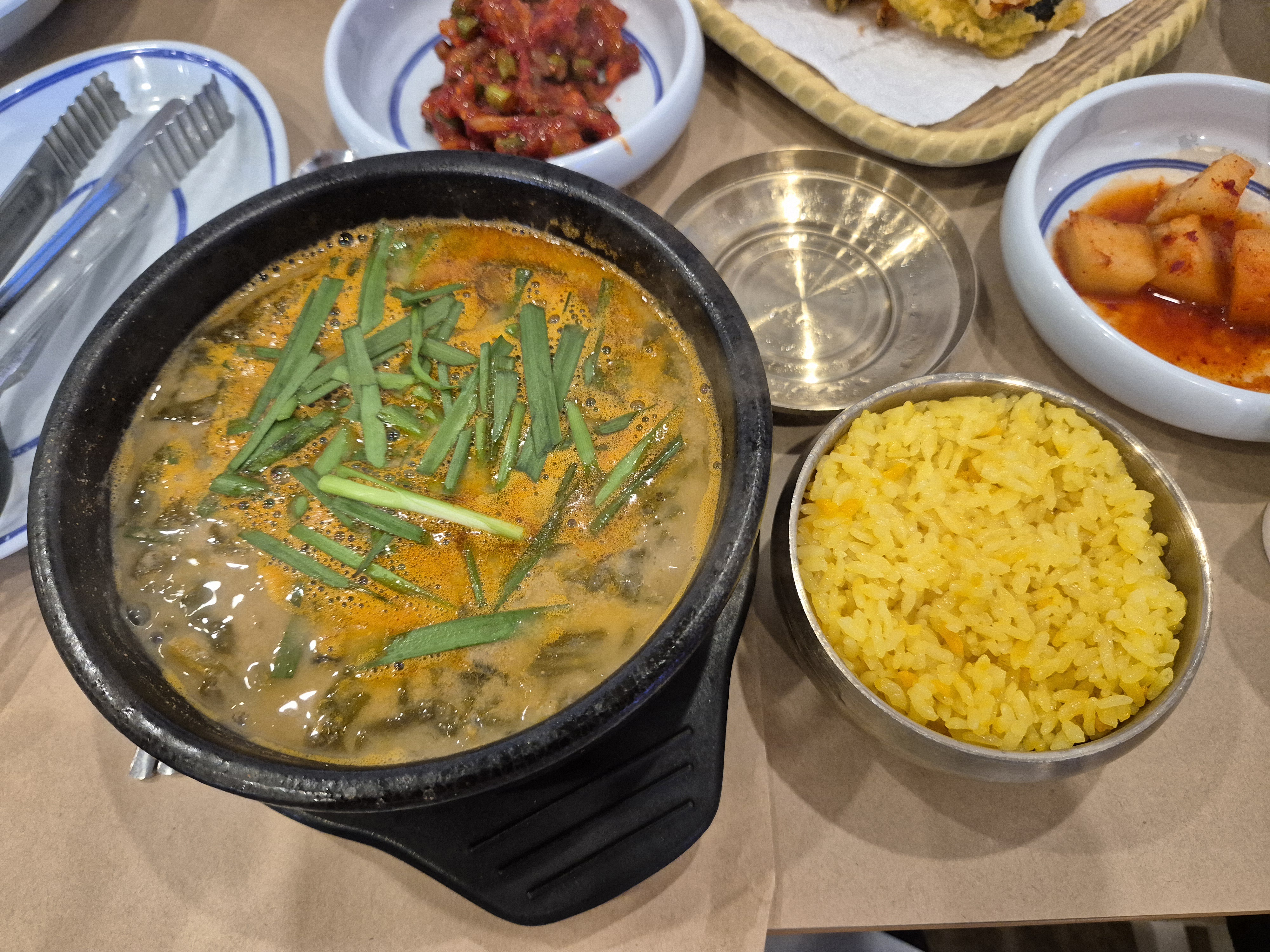 기본 상차림은 간소하게 나온다! 김치와 깍두기가 제일 궁금했는데 적당히 새콤달콤한 쉰 김치로 맛있어서 계속 집어먹었다~