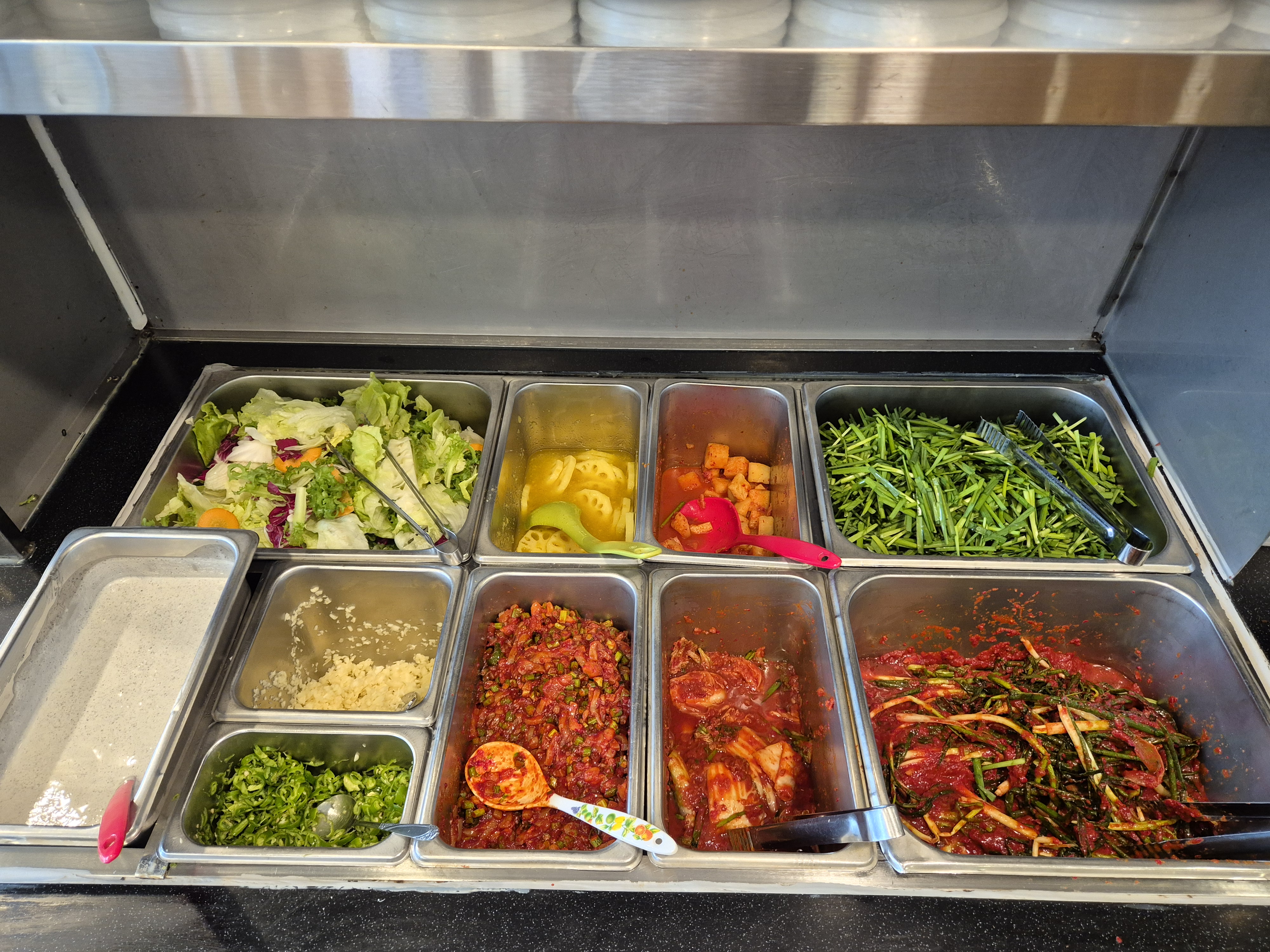 기본 상차림으로 나온 구성은 셀프바에서 부족한 반찬을 채울 수 있다!