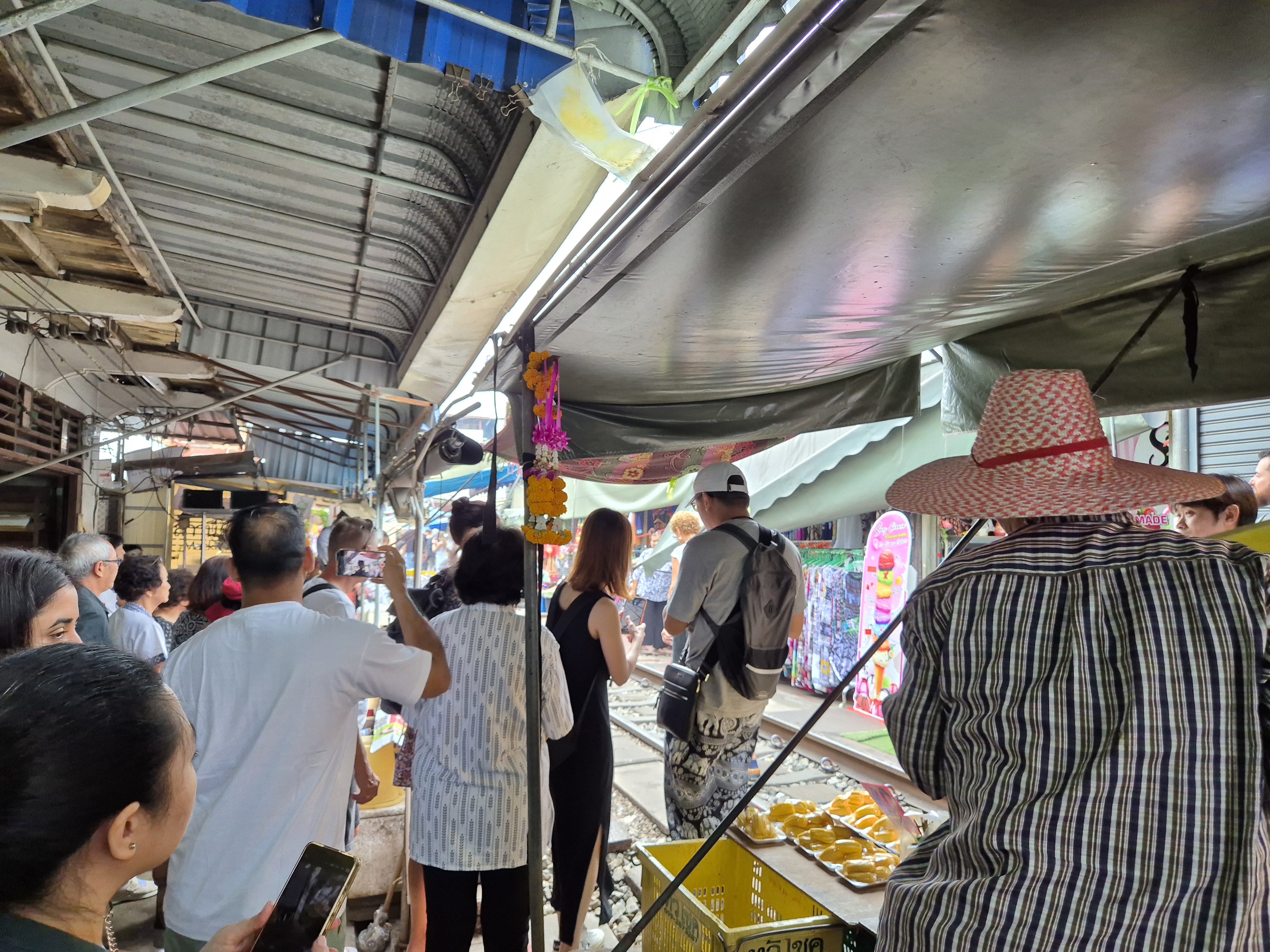 약 2시간을 넘게 이동하여 도착한 매끌롱 기찻길 시장! 기차가 들어오는 시간에 도착하여 들어오는 모습과 상인들이 길을 정리하는 모습을 보았다! 패키지 중에 시장을 둘러보거나 기차를 탑승하는 패키지도 있으니 입맛대로 고르면 좋겠다~