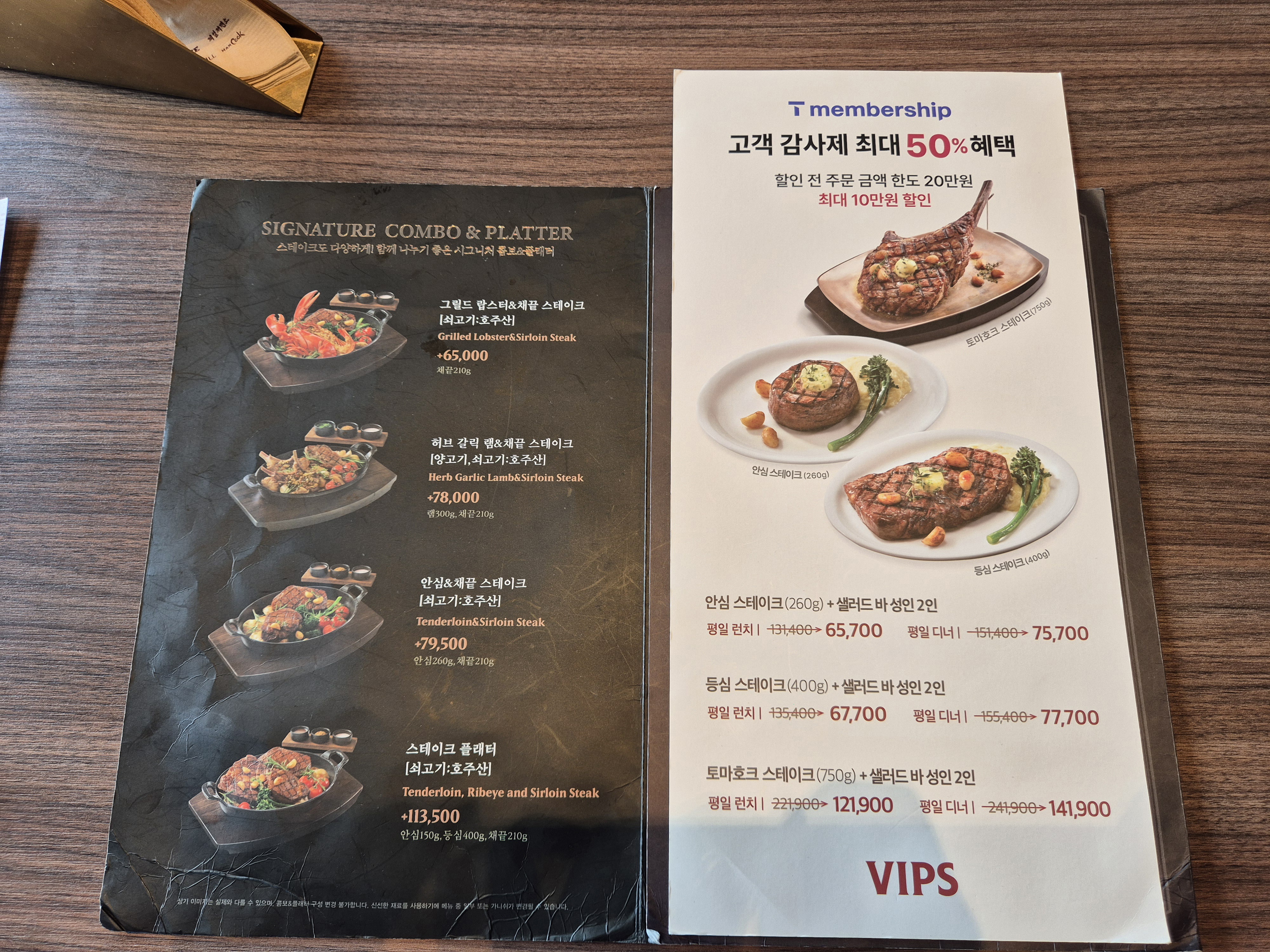 결국 고객 감사제 메뉴판의 샐러드바 3인 & 안심 스테이크와 채끝 스테이크를 주문하였다!