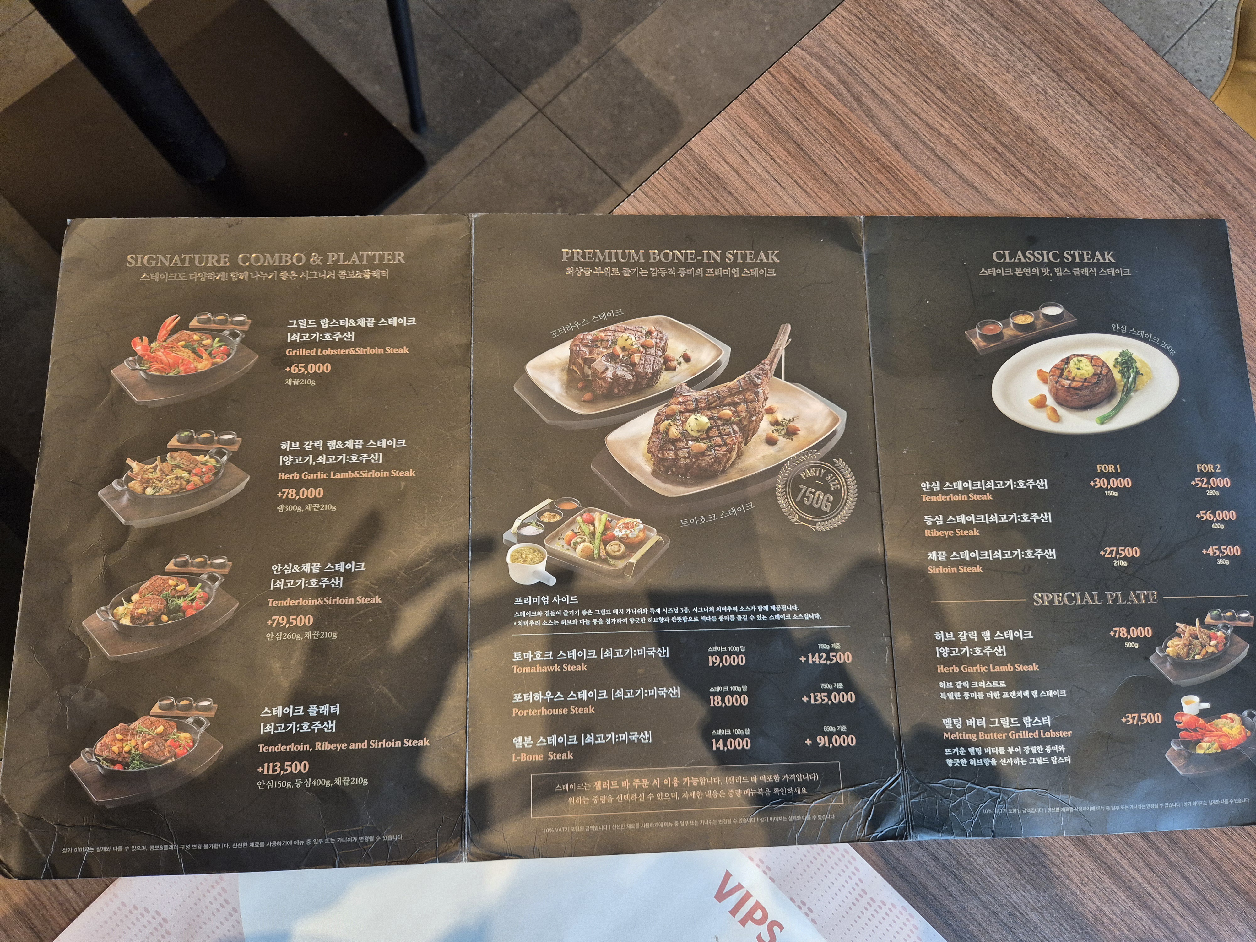메뉴판에 굉장히 맛있어 보이는 스테이크들이 많이 보인다.. 50% 쿠폰이 있으니 듬직하다^^