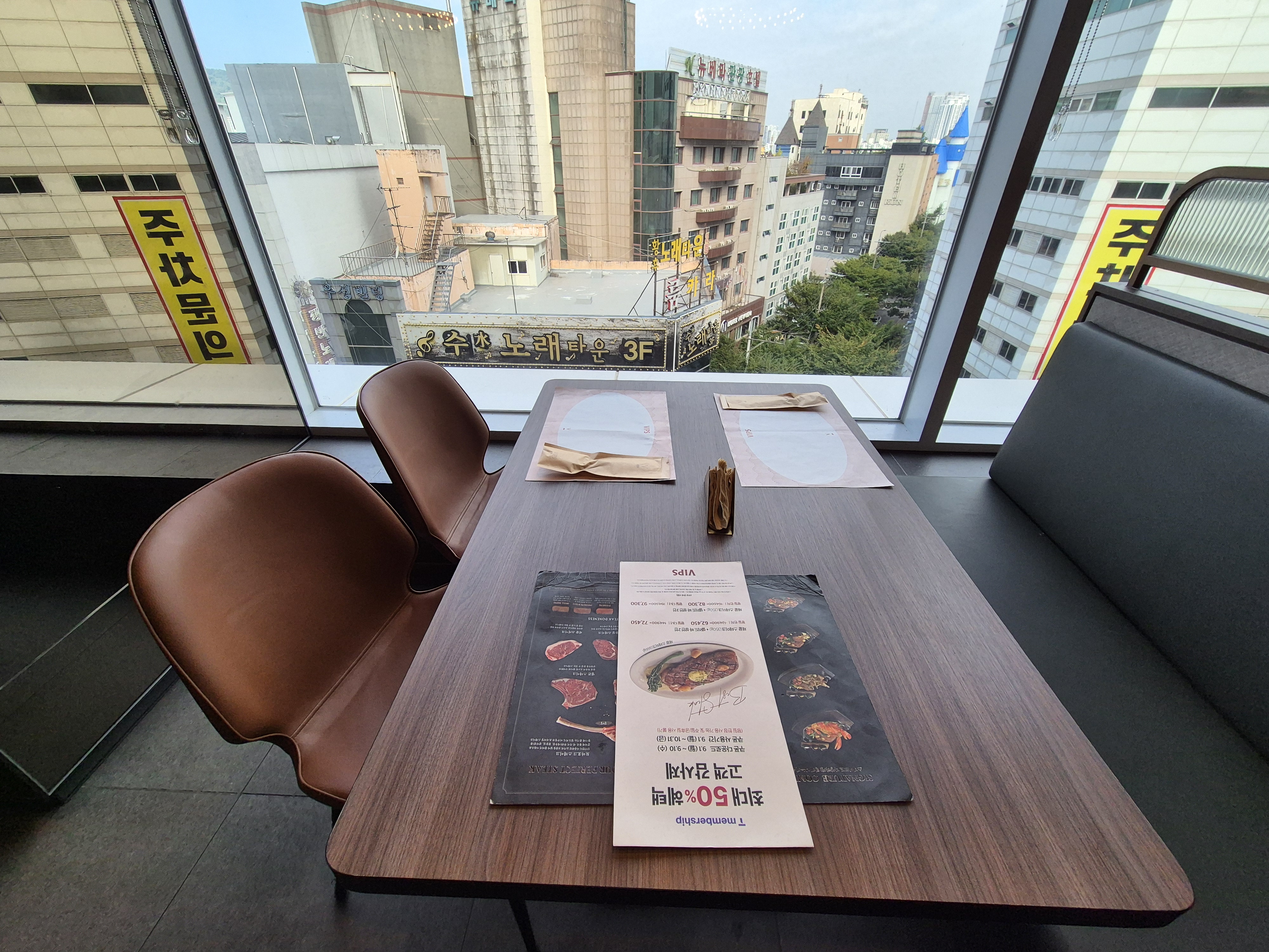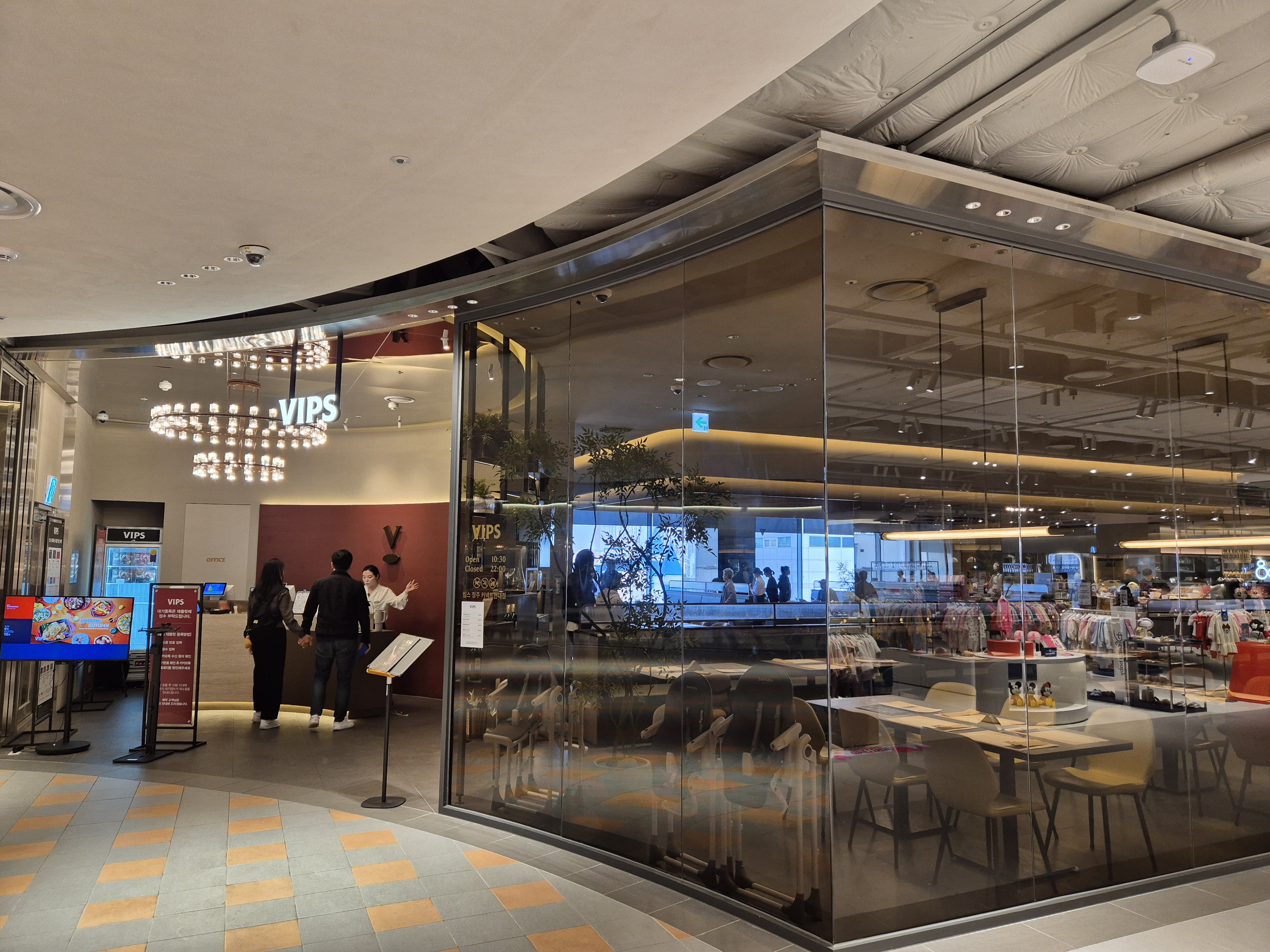 그래도 사람이 적은 테이블로 찍었음! 신상 건물의 매장답게 굉장히 깔끔하게 세팅되어 있다~