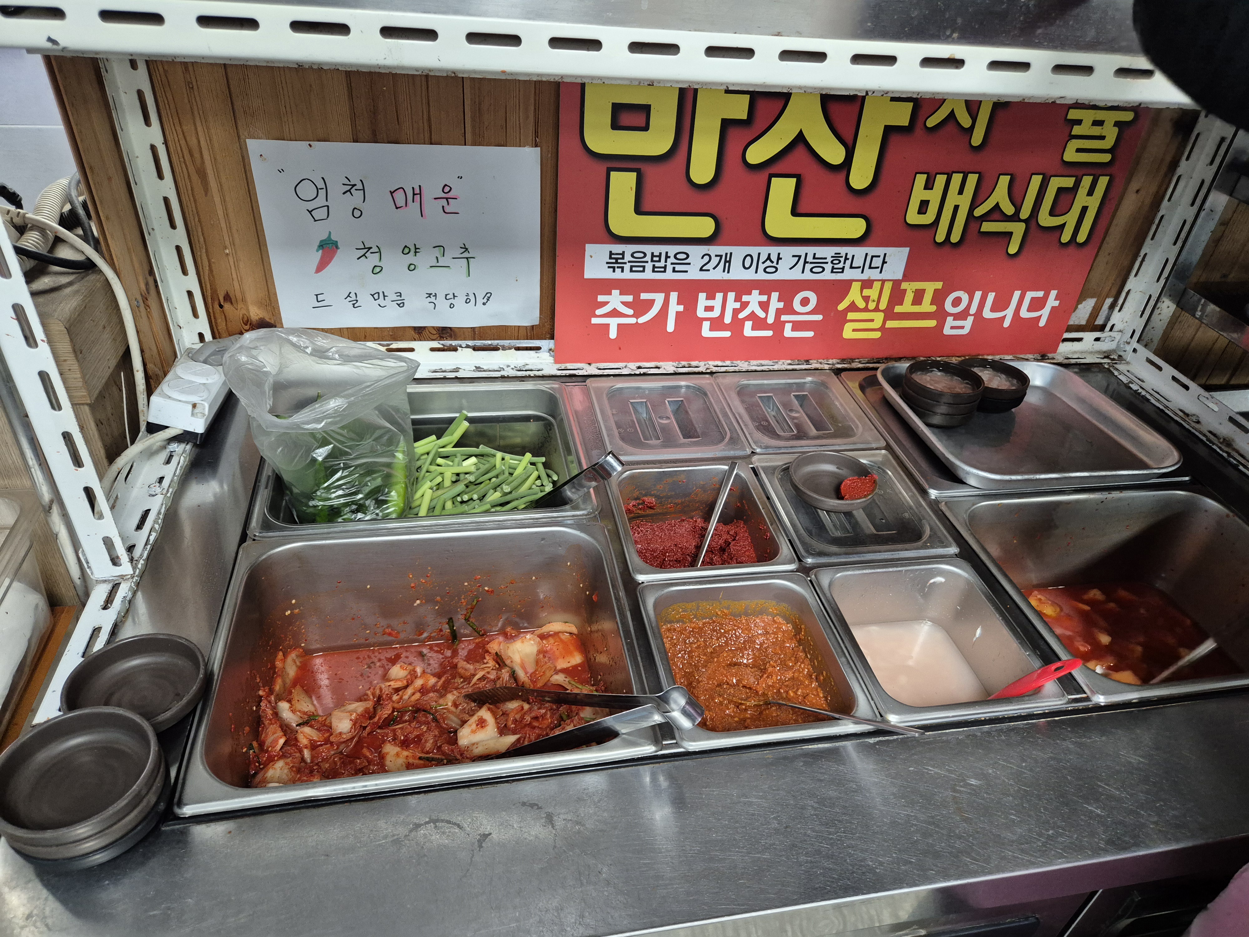 셀프바에는 김치, 깍두기, 쌈장, 새우젓들이 준비되어 있다! 다진 양념은 다른 곳에 있으니 참고~