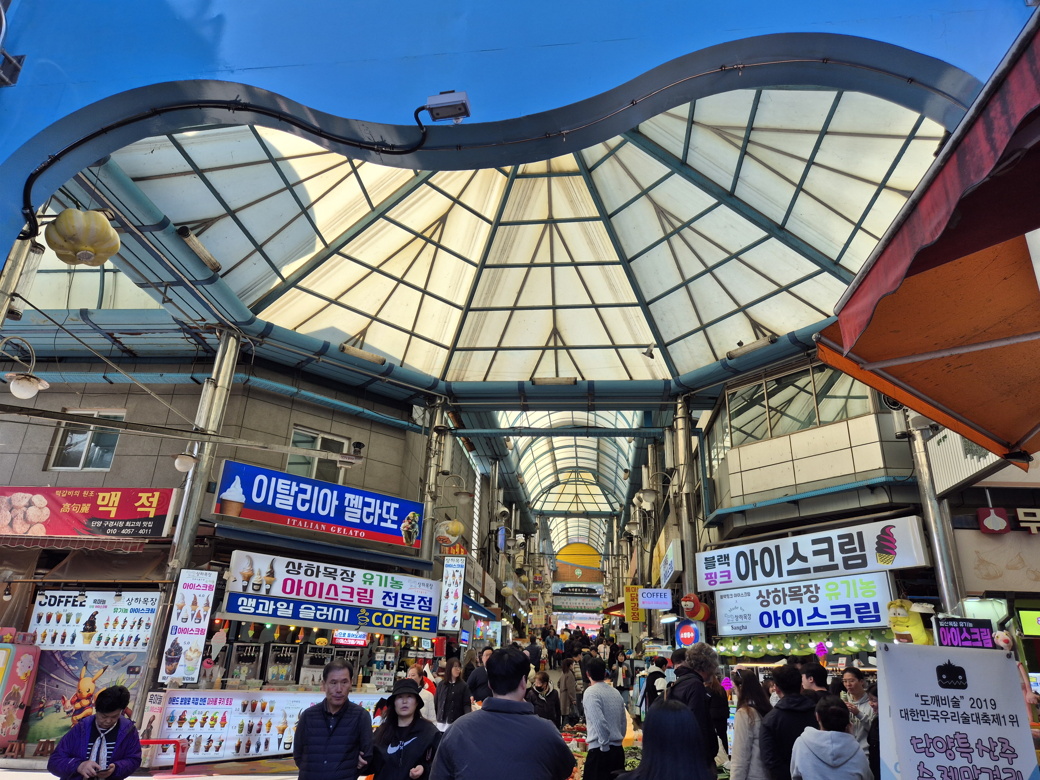 계단을 올라가서 5분 정도 걸어가면 단양 구경 시장이 나온다! 둘러보는 것도 재밌으니 시간 되면 시장 내부를 돌아보는 것을 추천한다~