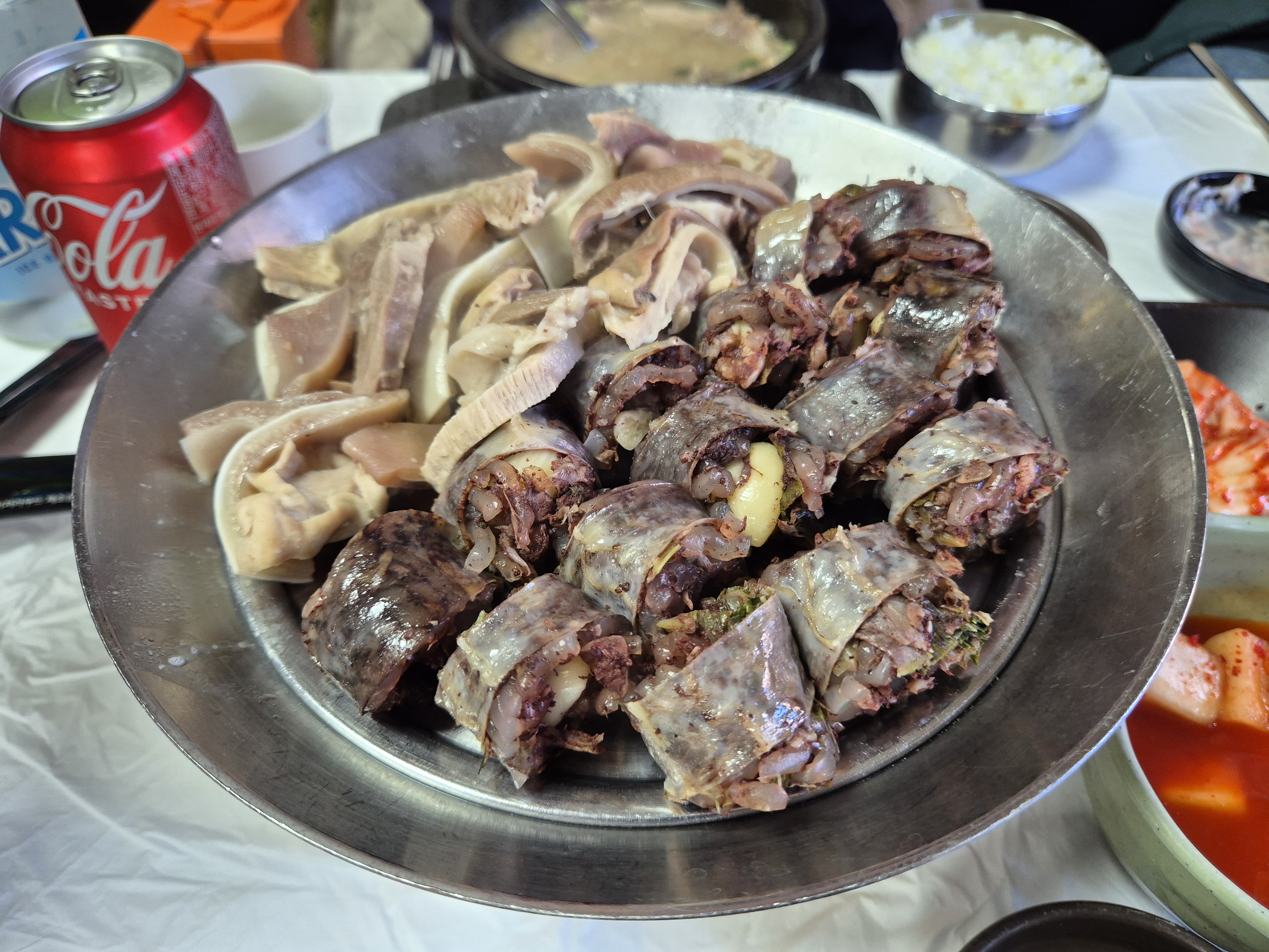순대는 주관적으로 굉장히 맛있었다! 쫄깃쫄깃한 건 기본이지만 다른 일반 순대보다 담백하고 구수했다~ 한 입 먹고 놀랬음... 순대 안에 마늘이 박혀있고 모둠이라 간, 허파 등이 같이 제공된다!