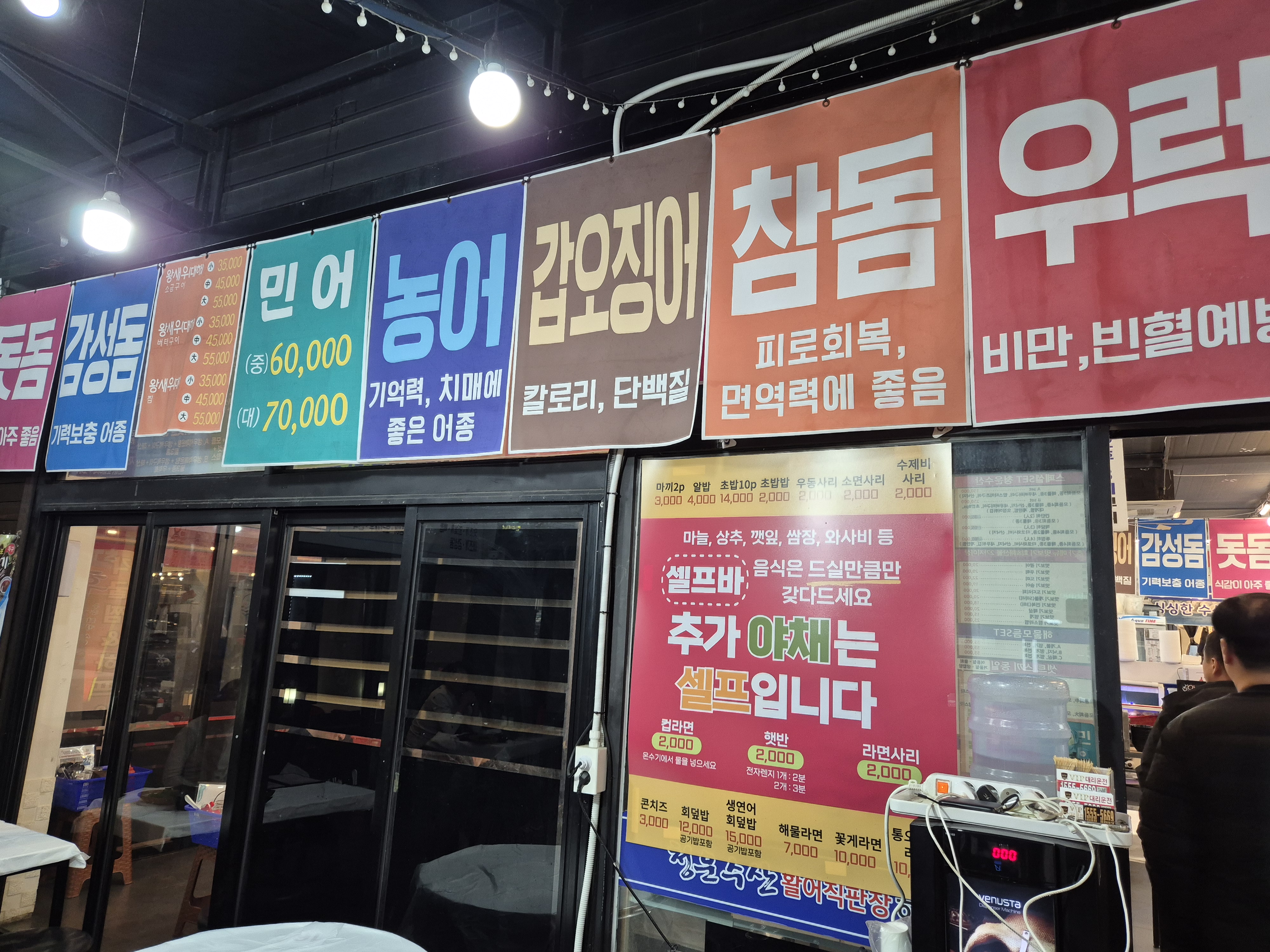 늦게까지 영업하는 횟집으로 야식으로 회가 당긴다면 아주 좋은 장소이다! 다만, 주차가 불편한 편~