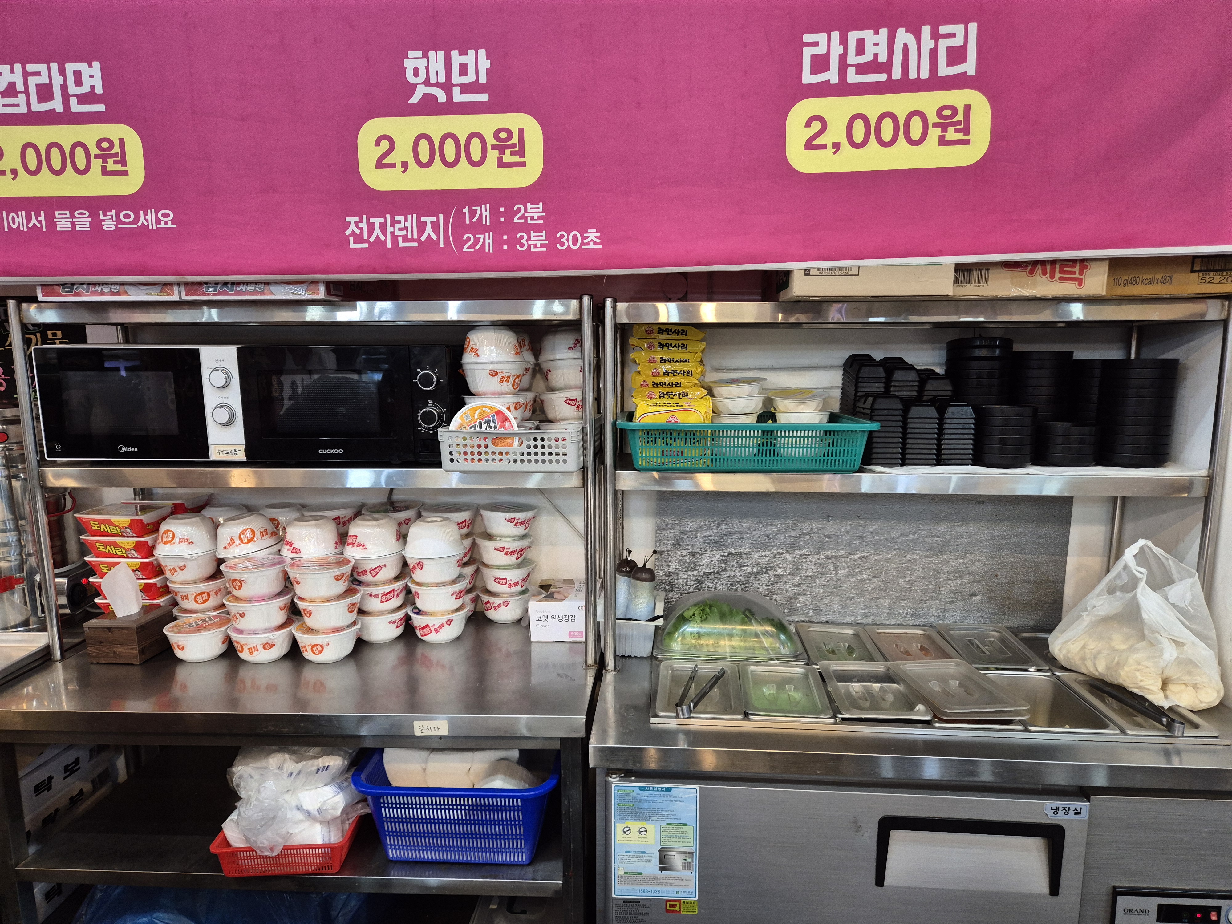 셀프바에는 라면, 햇반, 라면 사리가 있는데 종류가 많지는 않다!