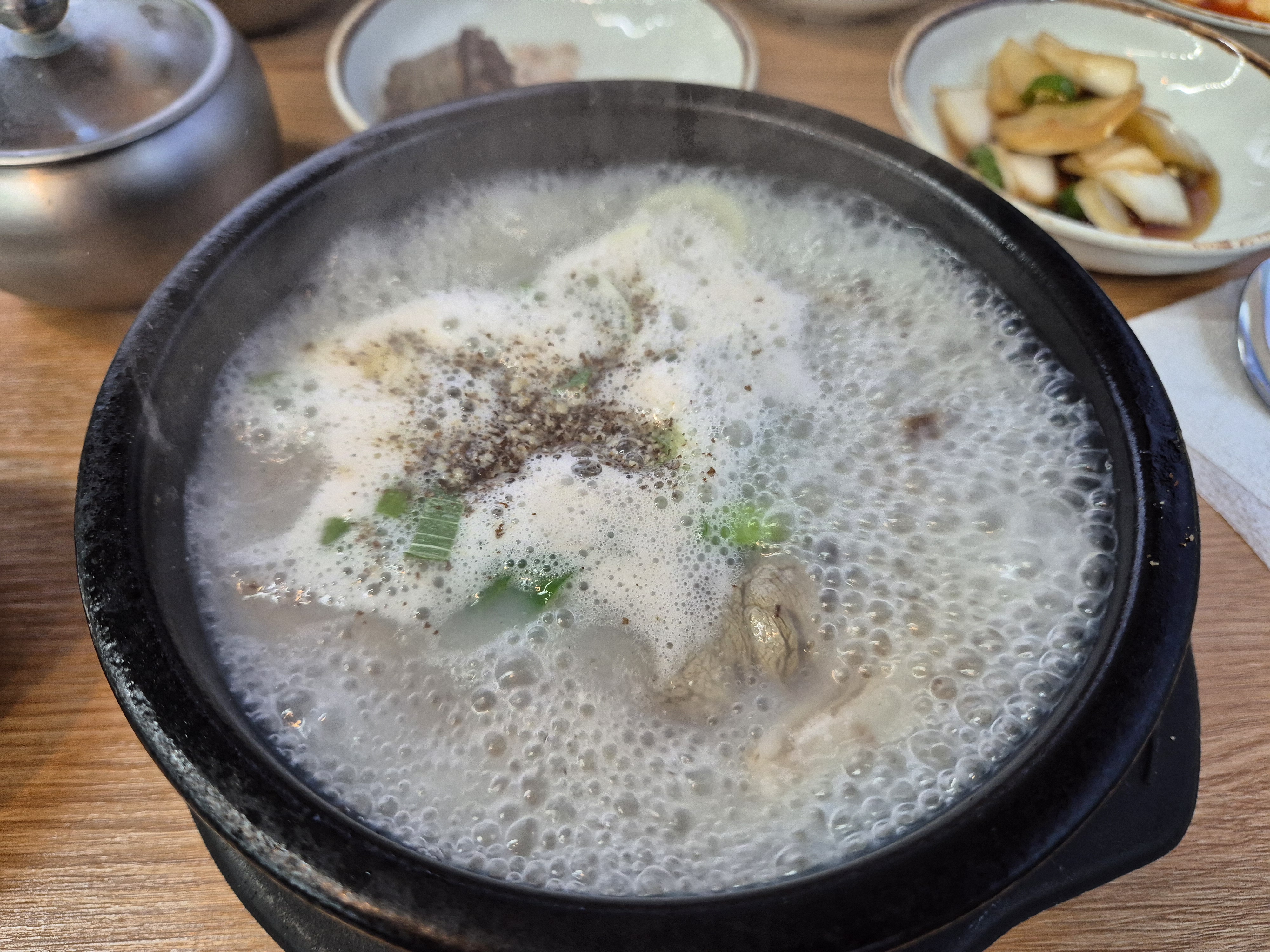 순대국밥이 나오기 전에 기본 세팅이 먼저 나왔다! 사장님이 서비스로 순대 4개를 주셨는데 식감도 보들보들하고 구수하며 맛있었다~ 역시 병천 순대만의 맛이 느껴진다!
