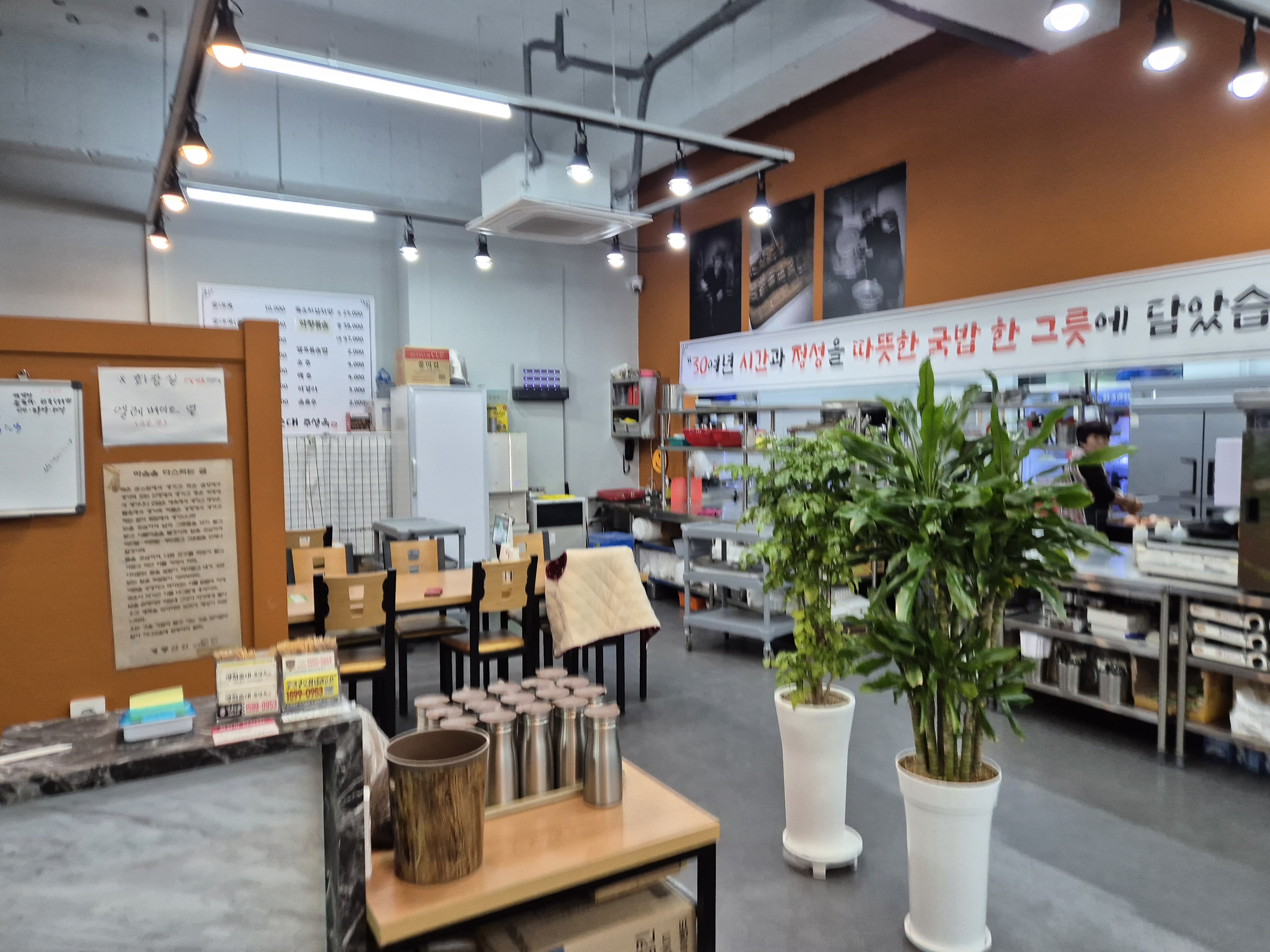 식당 자리는 두 곳으로 분산되어 있다! 가운데에는 주방이 바로 보인다!