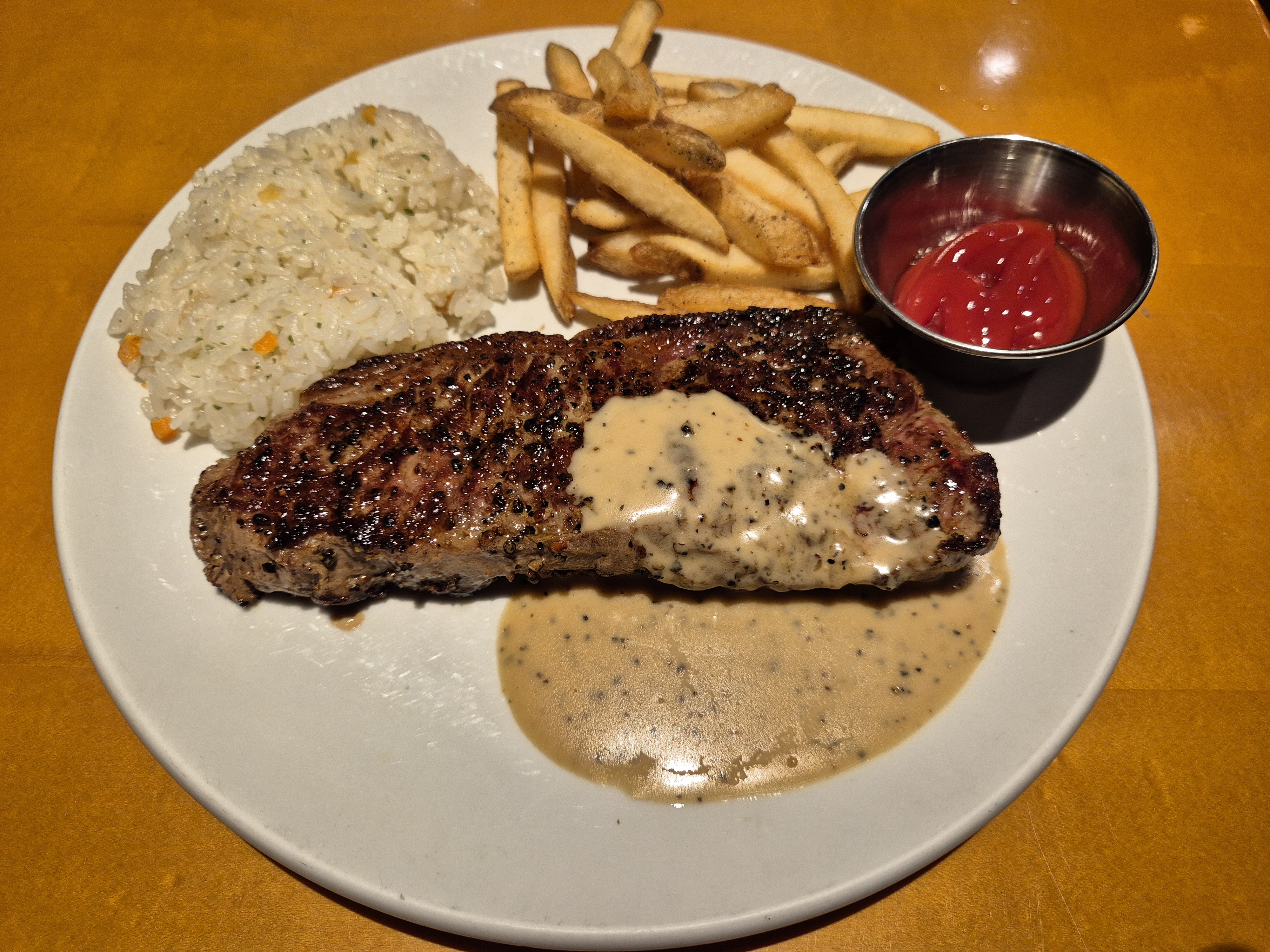 스테이크 - 미디엄 웰던으로 주문하였고 통후추의 잘 어울려진 고기의 식감이 좋았다! 소스도 달달하고 맛있으나 후추 본연의 간이 베긴 스테이크가 개인적으로 더 맛있었다~