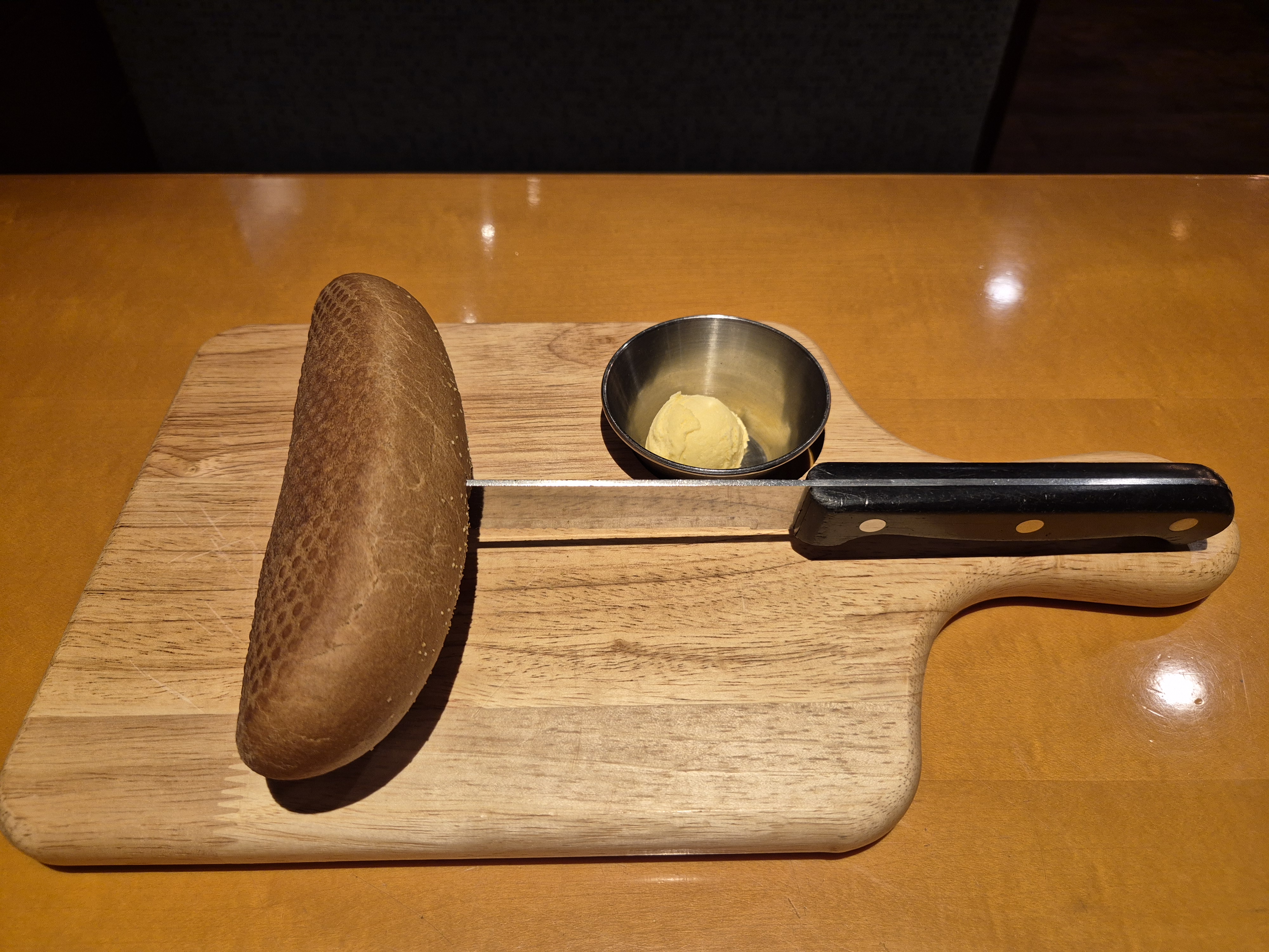제일 먼저 브레드가 버터와 같이 나온다! 겉바속촉의 빵은 나이프로 잘라서 버터와 먹으면 맛있는 애피타이저였다!