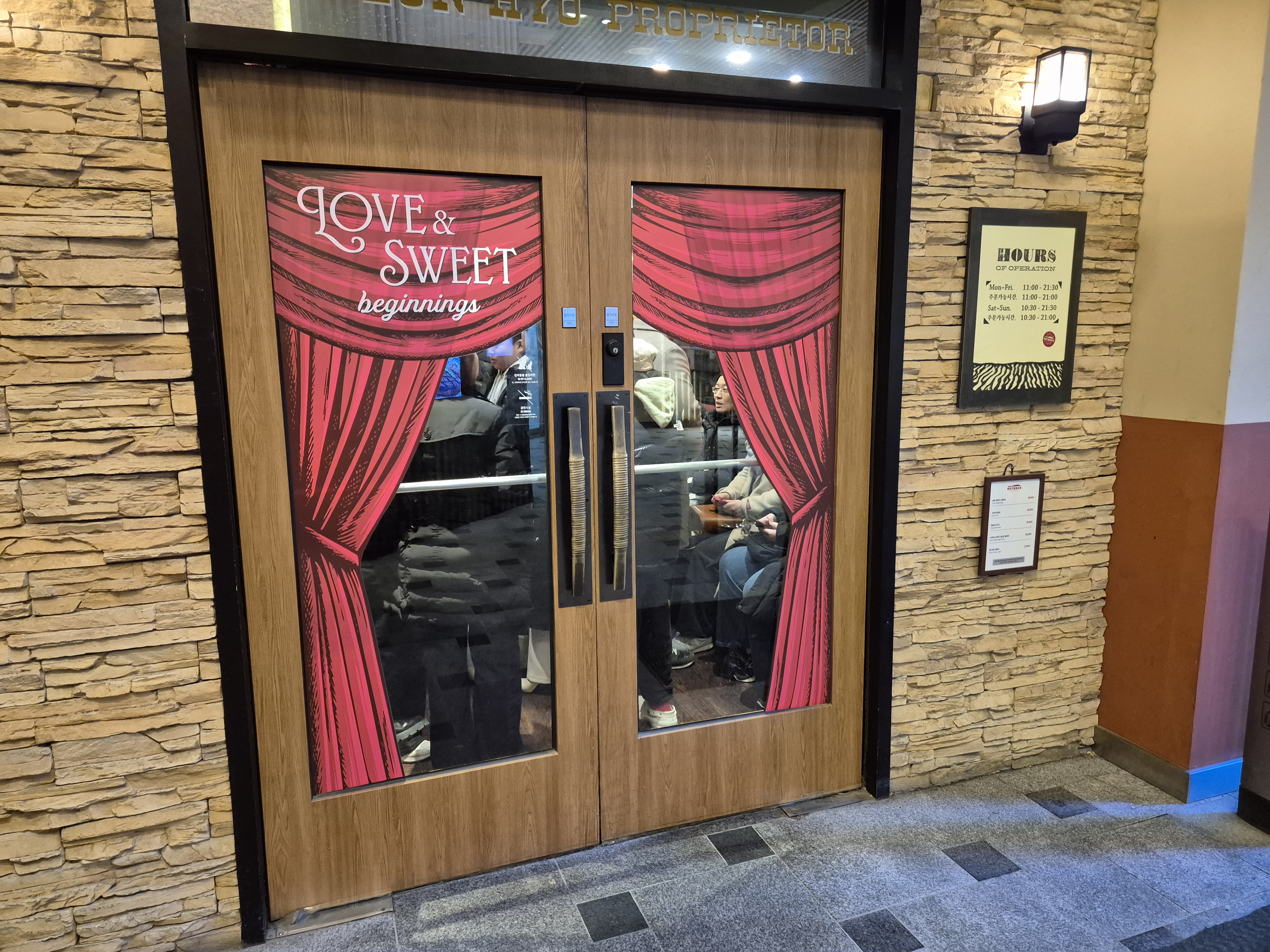 입구 옆에 영업시간과 주문 가능 시간 정보가 부착되어 있다!