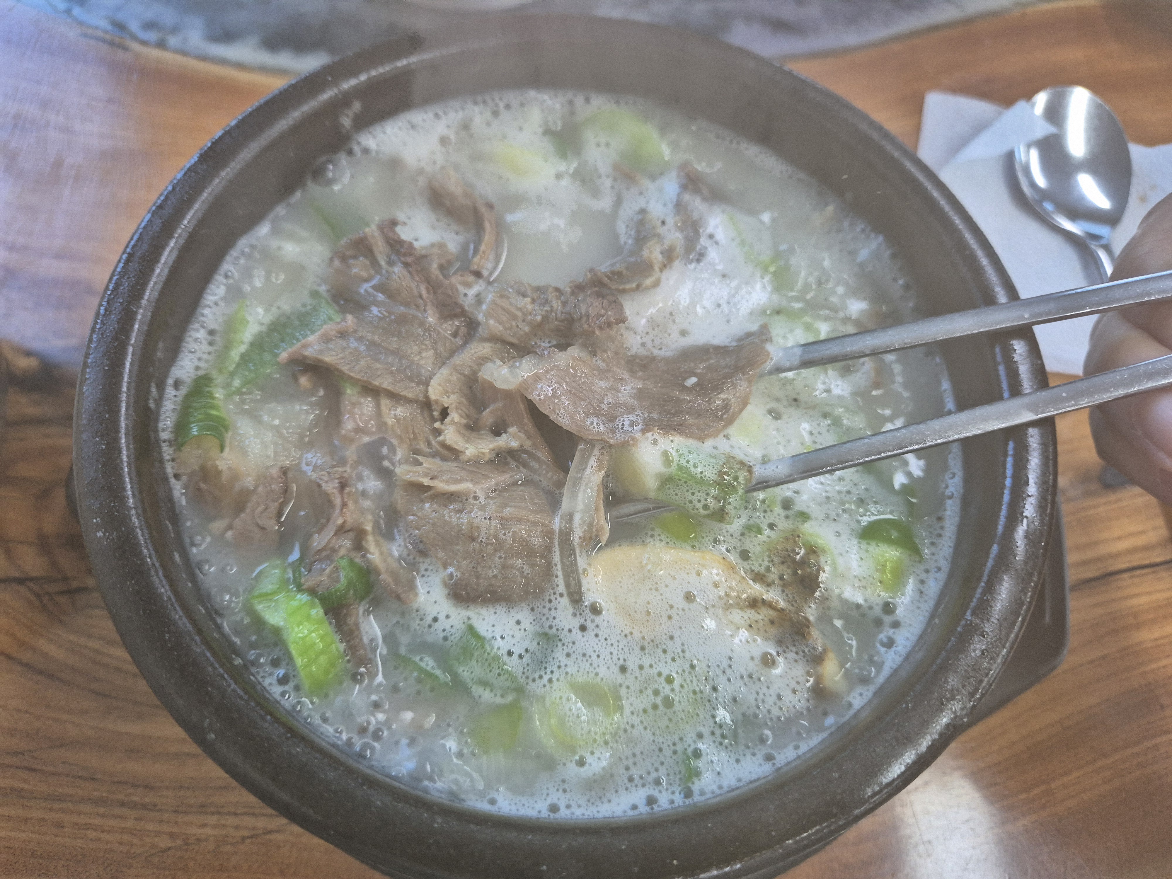 몸이 건강해지는 느낌의 산삼 곰탕! 장작불로 고와서 더욱 맛있고 고기도 부들부들하고 좋았다! 아침 일찍부터 영업하여 시간제한 없이 먹기 좋다~