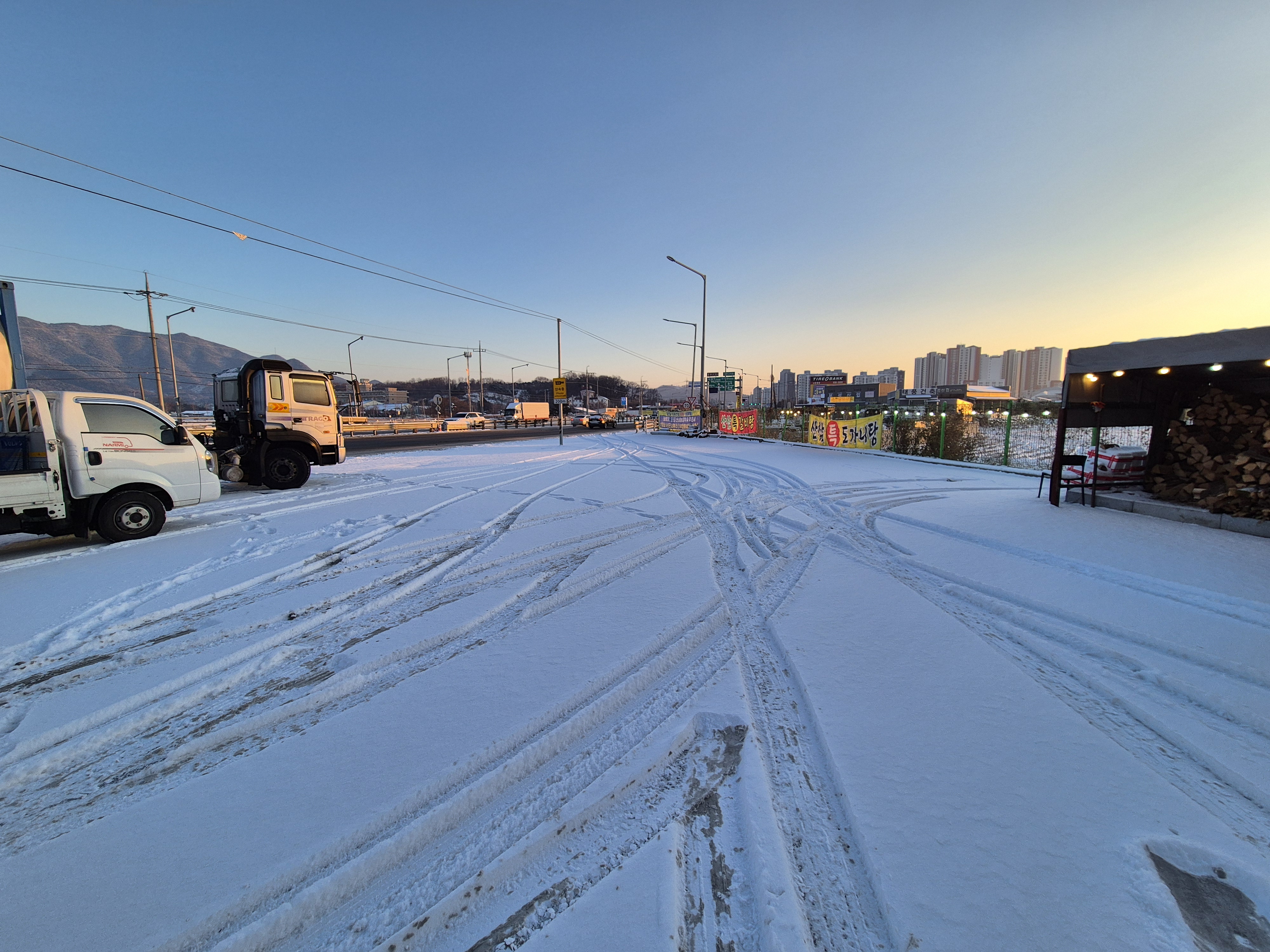 건물 옆 쪽에도 있지만 입구 앞에 아주 넓은 주차장이 구비되어 있다! 눈으로 덮여서 구획선 여부는 확인을 못함!