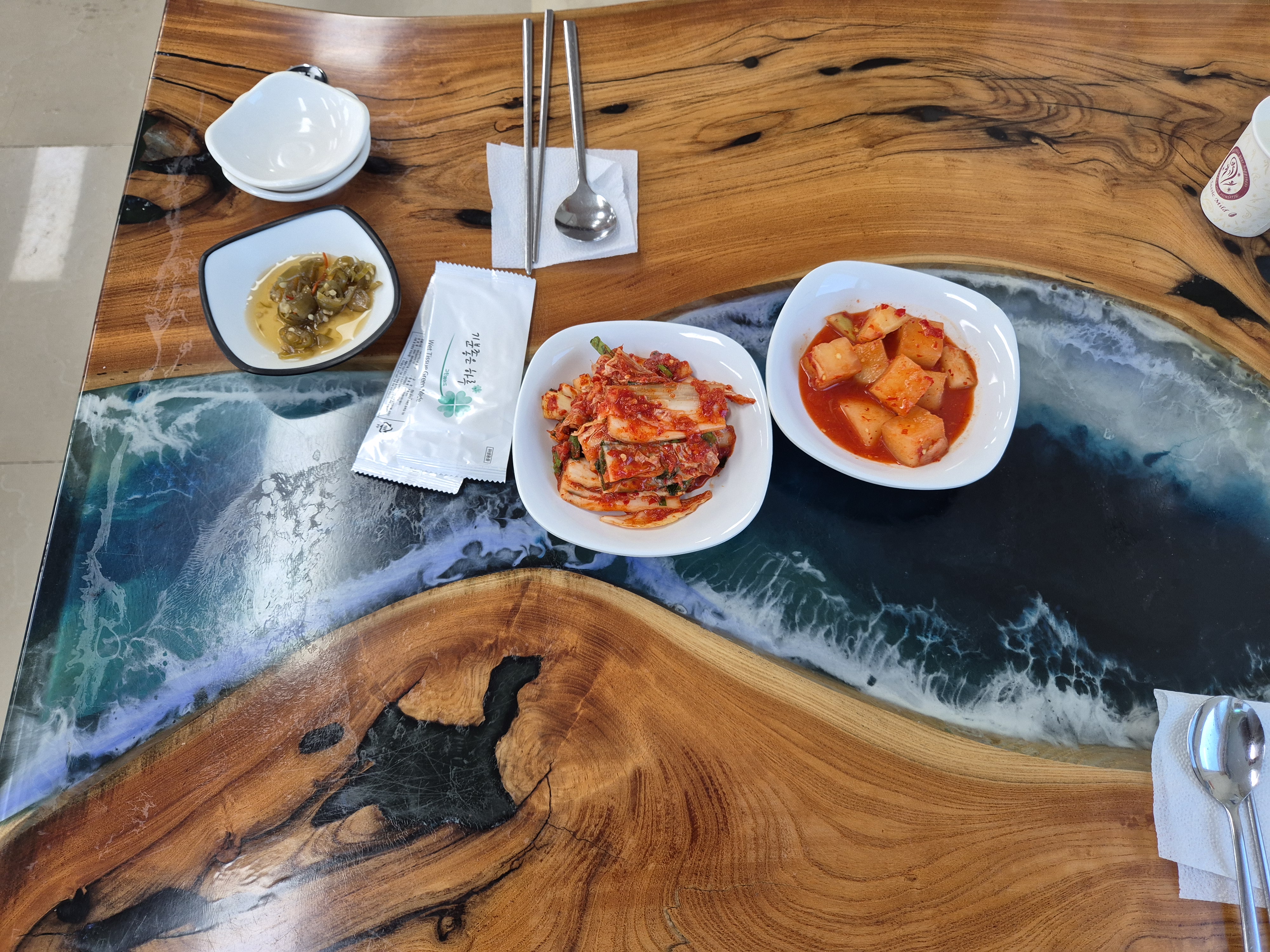 셀프바가 있는데 김치와 깍두기, 피클만 준비되어 있다!
