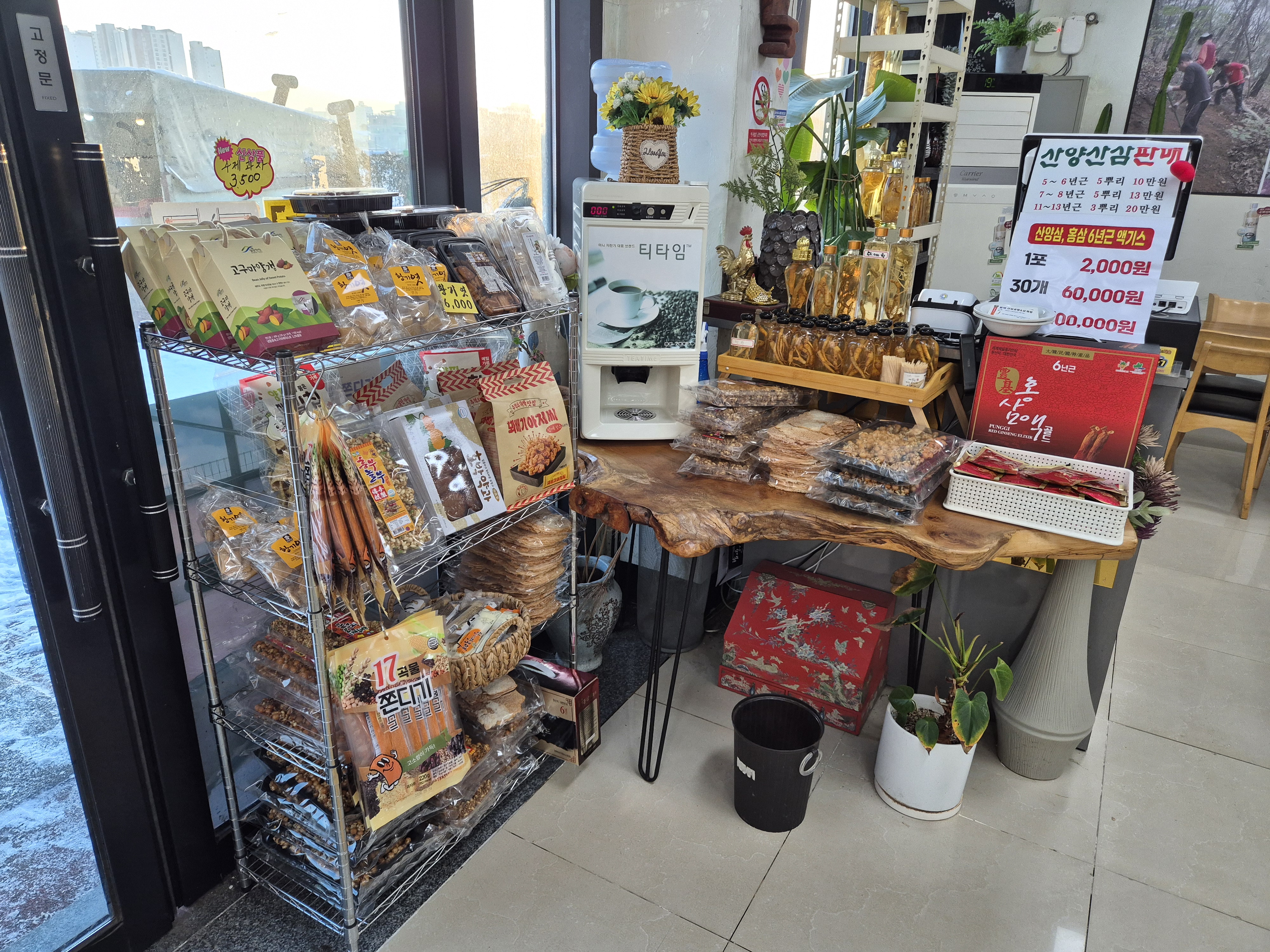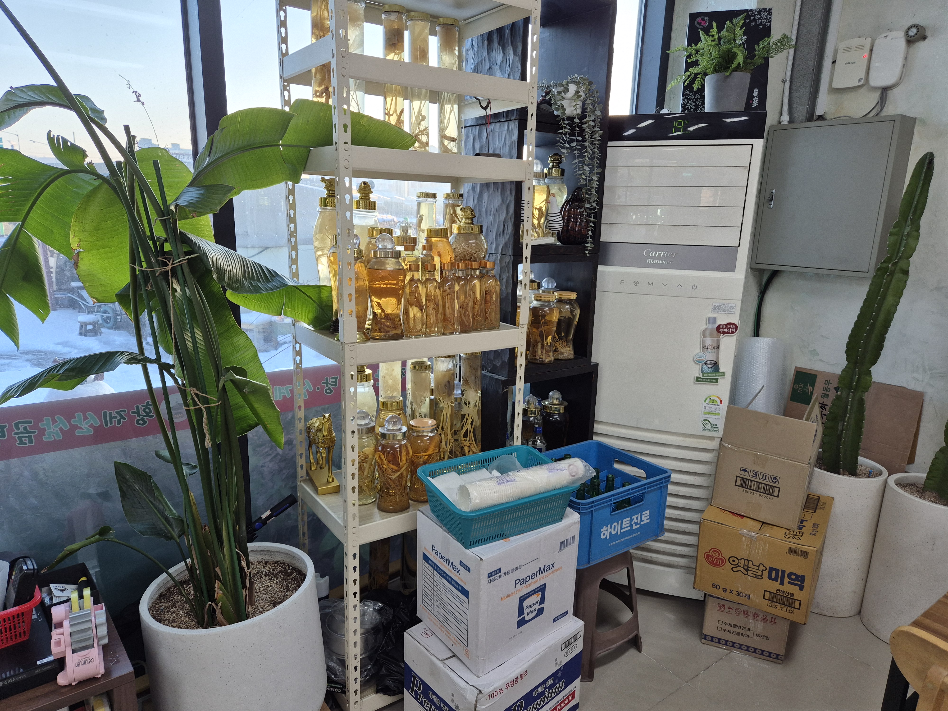 산삼주를 담가놓은 상태로 전시해 놓은 것도 보였다! 직접 판매를 하는지는 모르겠다~